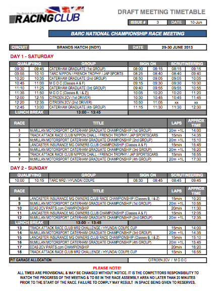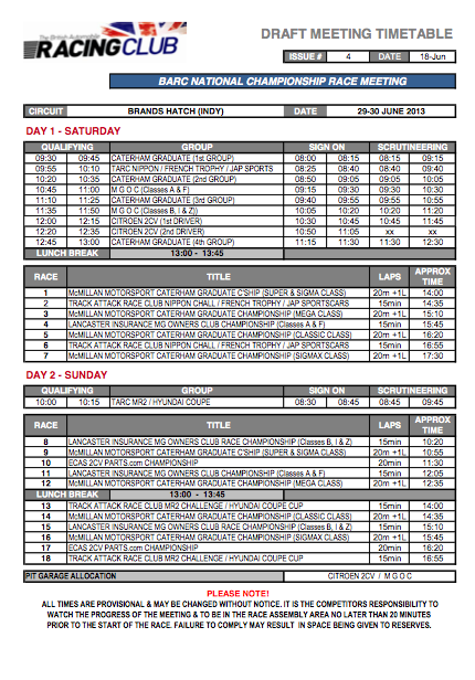Revised Draft Timetable for Brands Hatch issued yesterday