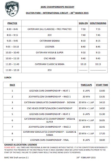 Rounds 1&2 2cvParts.com 2cv Racing Championship Provisional Timetable