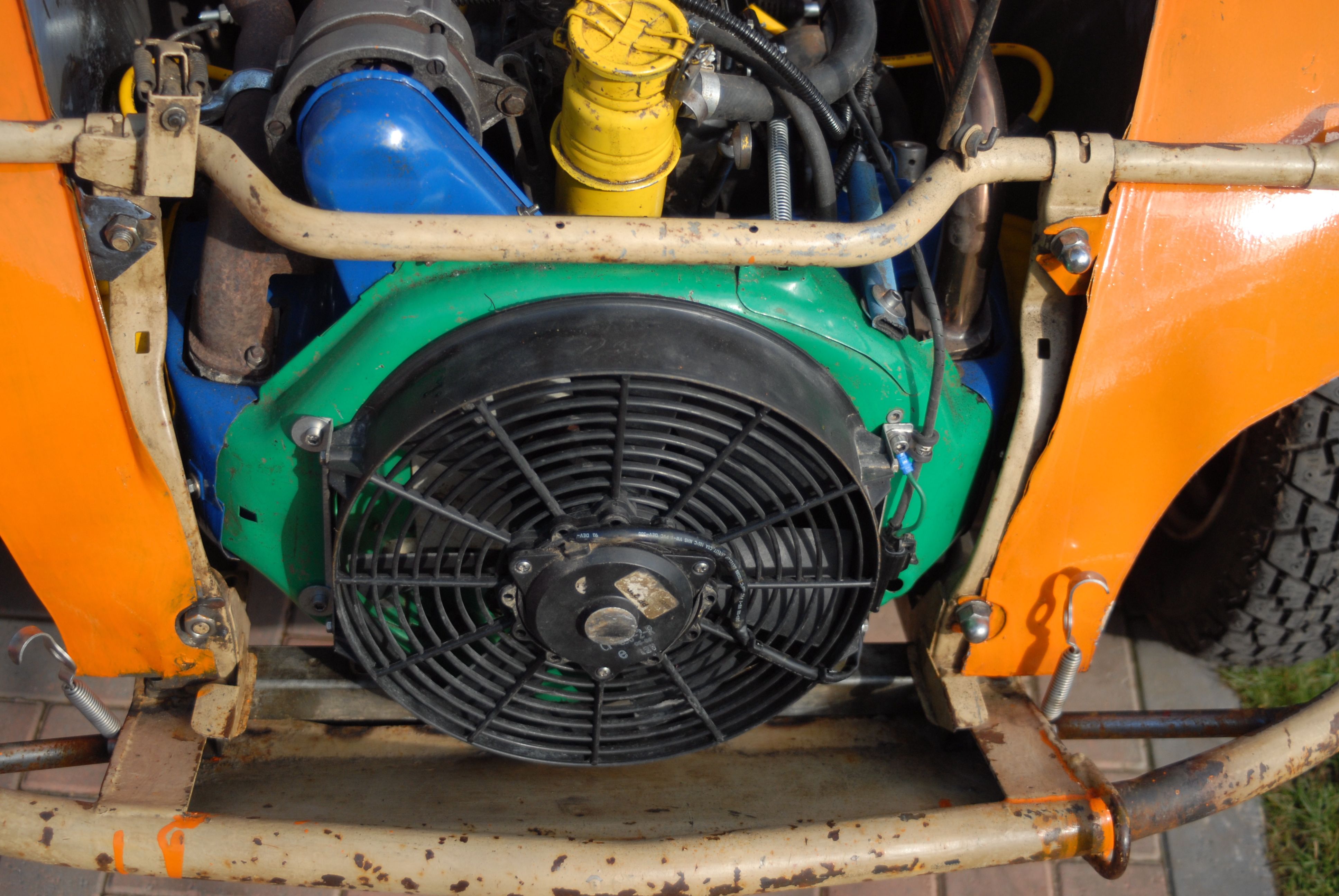 Here's a pic of a "Passet" fan fitted. Allows you to drive through water without any problems. Attachment: