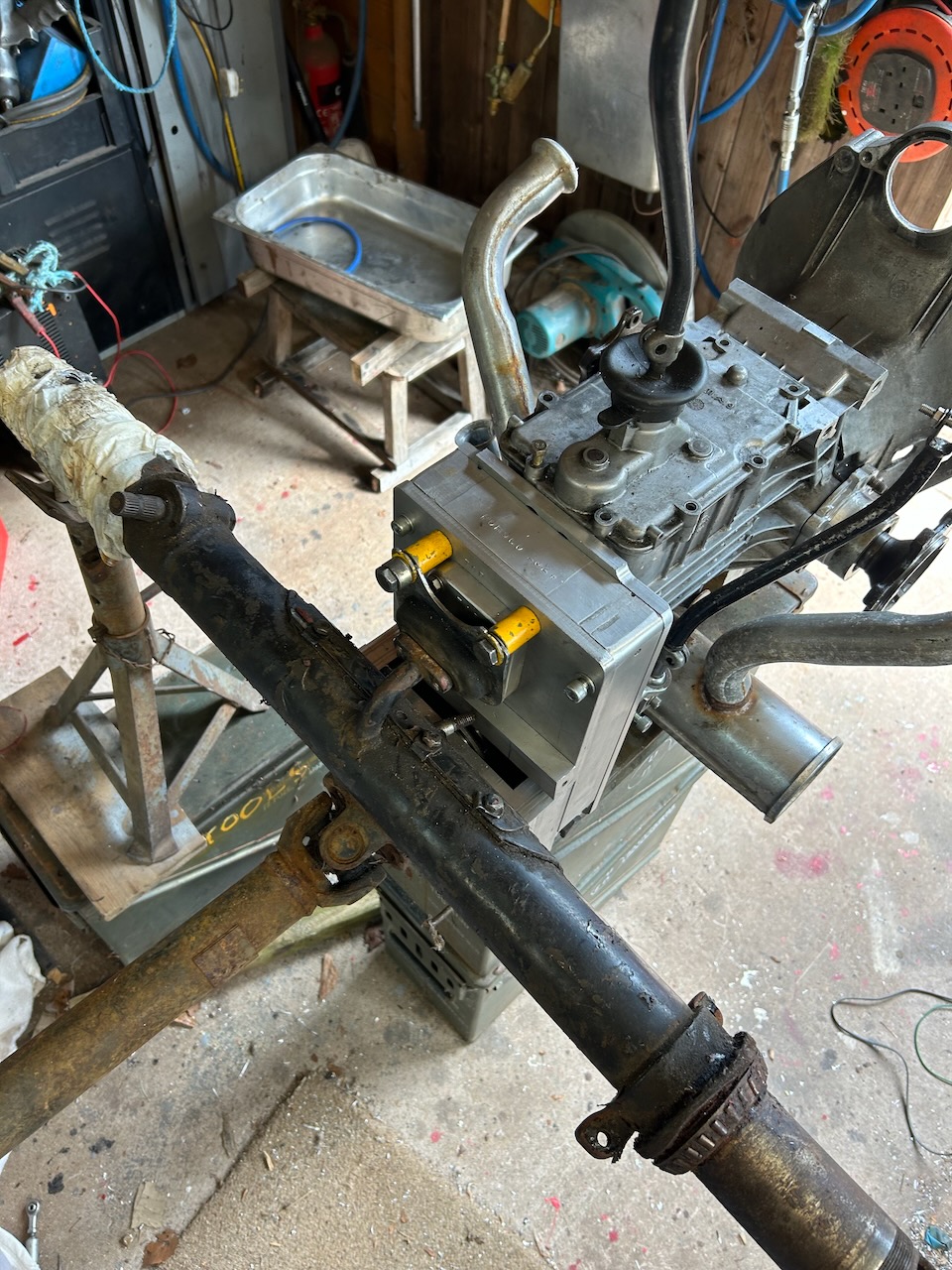 The saga so far..... Standard parts, Modified Parts and new parts. The "new" parts not yet, necceassarly in the correct order  Some of the bits to do ... Oil Seal for selector rod, and (gear) lever for selector rod. Estimated additional total weight about 14Kg  Attachment:
