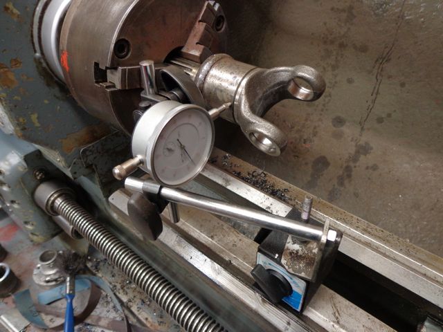 Checking prop shaft run-out.