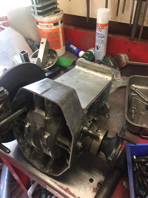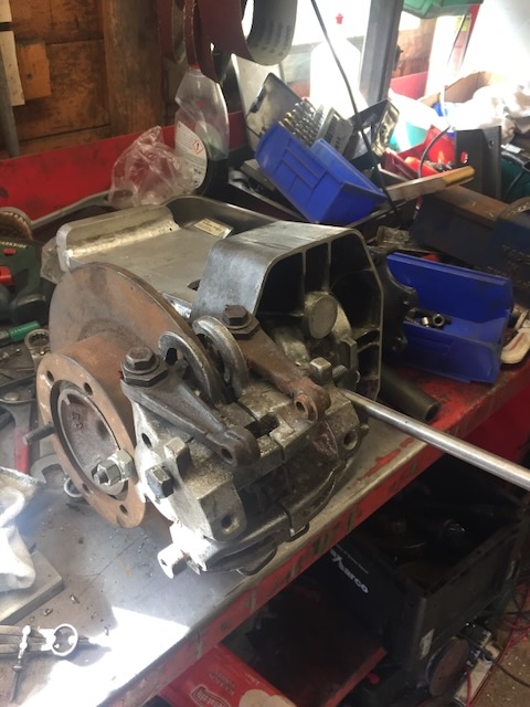 The plan……At the moment the rear cover is removed, the top shaft /longer version/ is replaced and the new “stuff” is bolted on, with output shaft passing under front suspension/steering tube. Attachment: