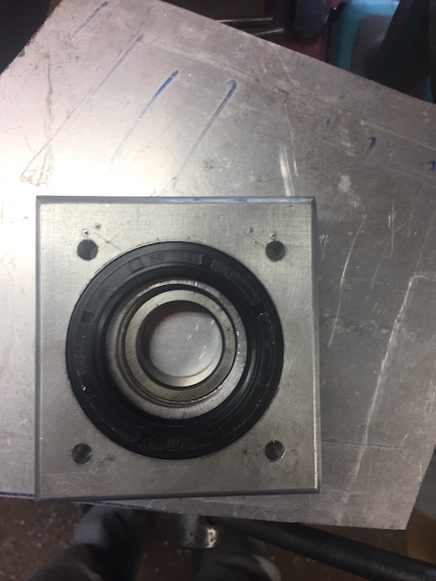 Was all going quite well, making the oil seal/bearing plate. See photo, the rebate on the back, about 2mm of centre:(. Hopefully, I can get a larger OD seal and of set the hole to match the "Bodged" bit. Attachment: