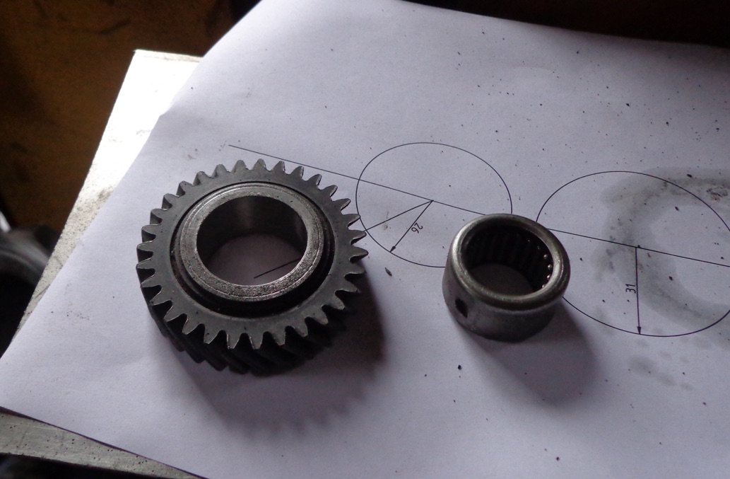 LNA mainshaft, plan is to make from that an idler gear. Just need to make more measurements before start to modify...