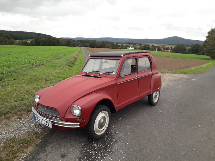 A friend in Germany did find this 68 Dyane yesterday. Apart from the roller paintjob it seems to be ok.