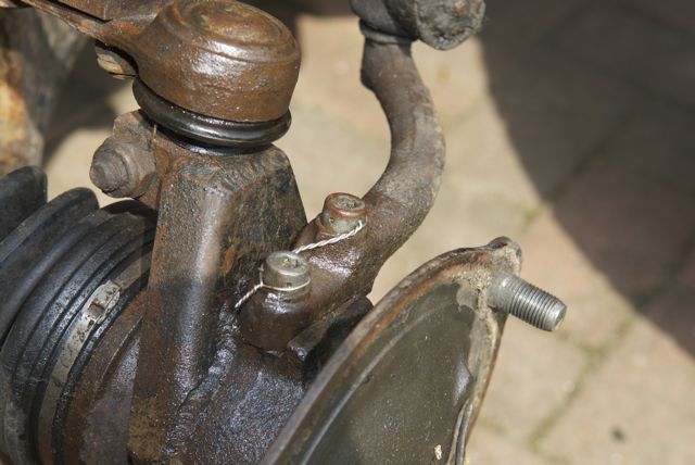 steering arms get the racer treatment   Shanked Hi tensile 12.9 M8s stronger than welded up arms. altho this car wont go on a raid its going to be tough as old boots.