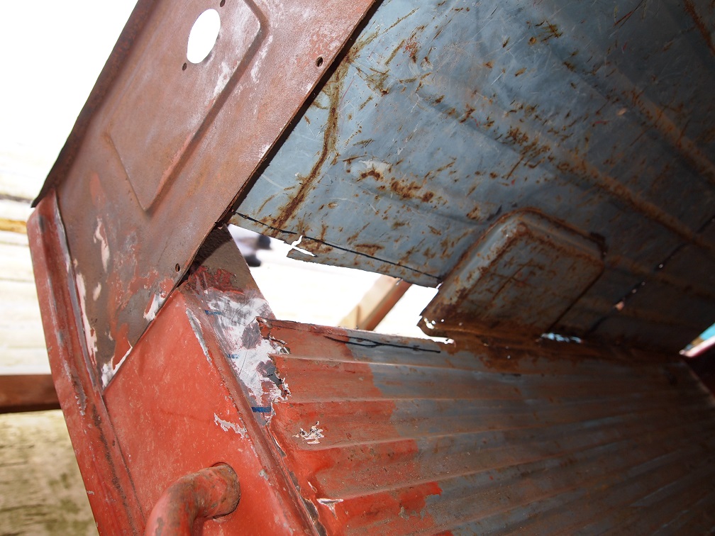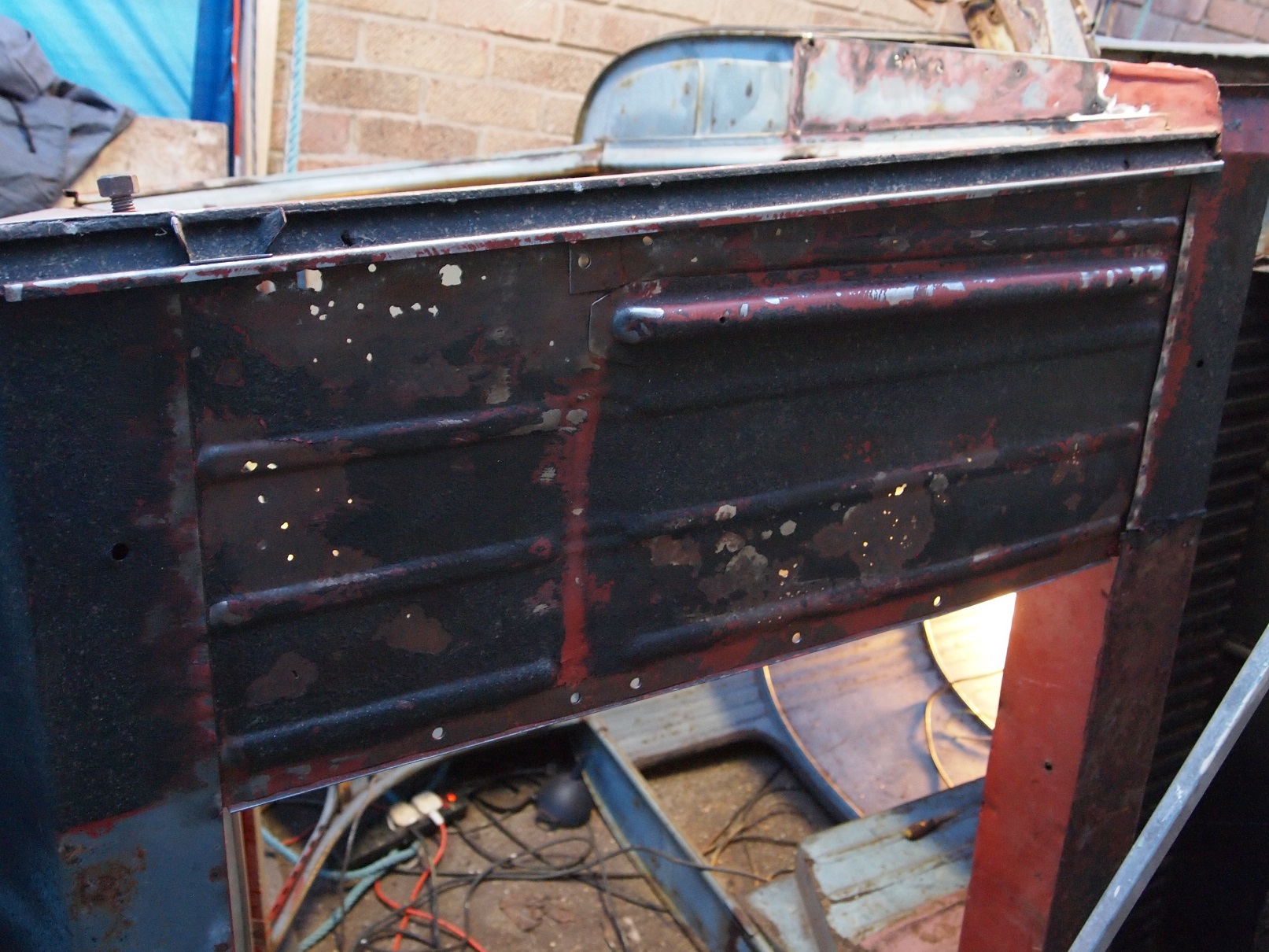 The panel behind the passenger doors from the waist down, which forms the front of the tank and spare wheel bays, is a bit of a sandwich and water and damage had rather trashed both sides.