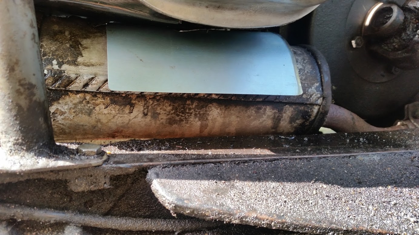 The little oil leak is still there. I can't find the location so i put a little aluminum plate above the exhaust. Bolted to the cylindre head. Hope the oil will now drip left and right of it. I made a little edge on the rear so the oil will not be blown on the rear end of the exhaust...we will see.