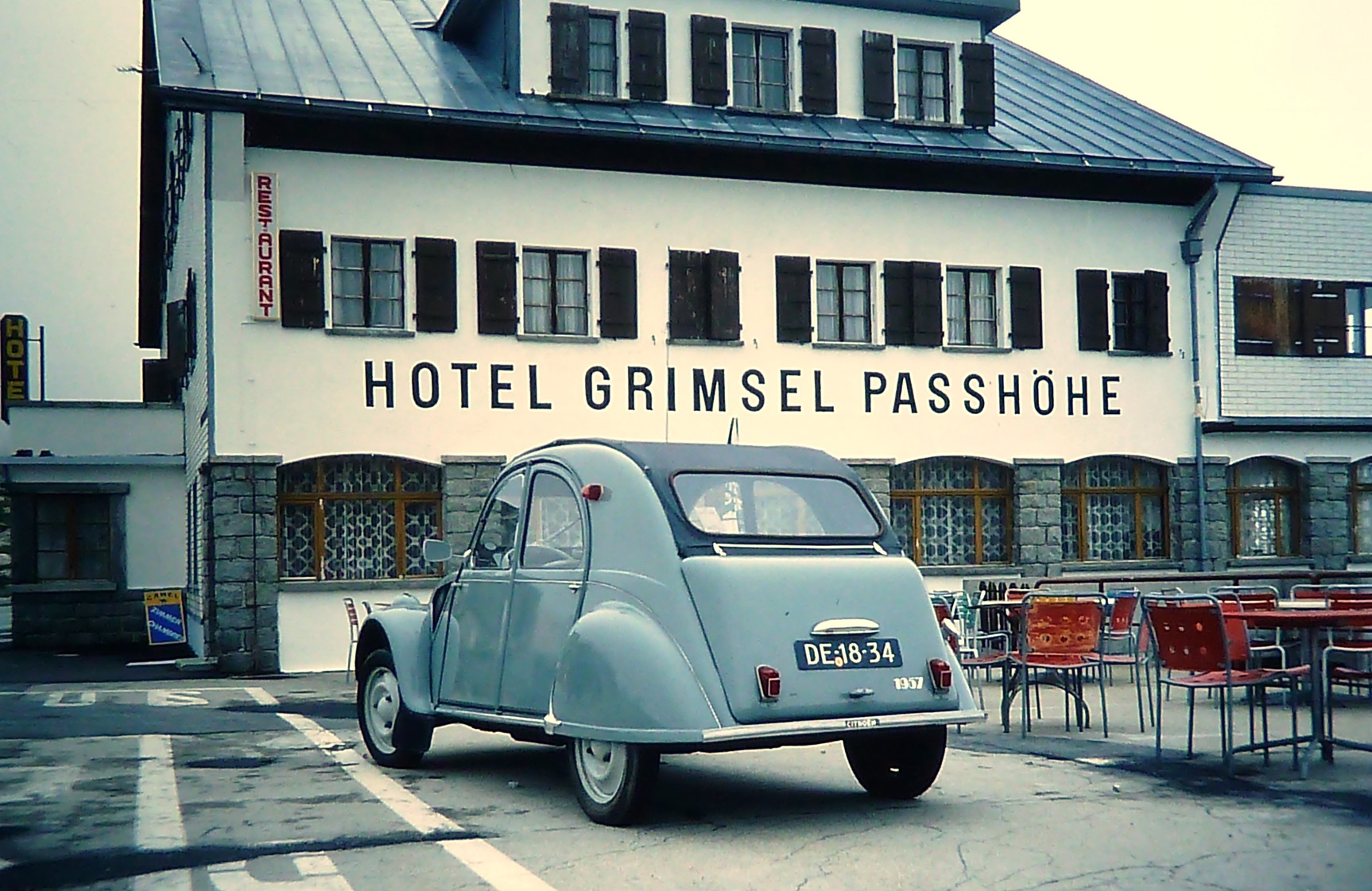 Did find this old picture of my 2cv on the Grimsel Pass. It was taken during the 2cv worldmeeting in Switzerland. A nice climb for the loaded 12 HP.