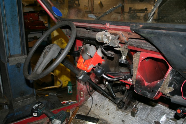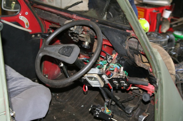 Thanks to Graham Wilson at the 2CV workshop for cutting me a piece of bulkhead and a huge thank you to Neil who met me on the M4 on his way to Spa to deliver it.. I now had the jigsaw piece required to swap the controls over. Together with a LHD rack we dived in..