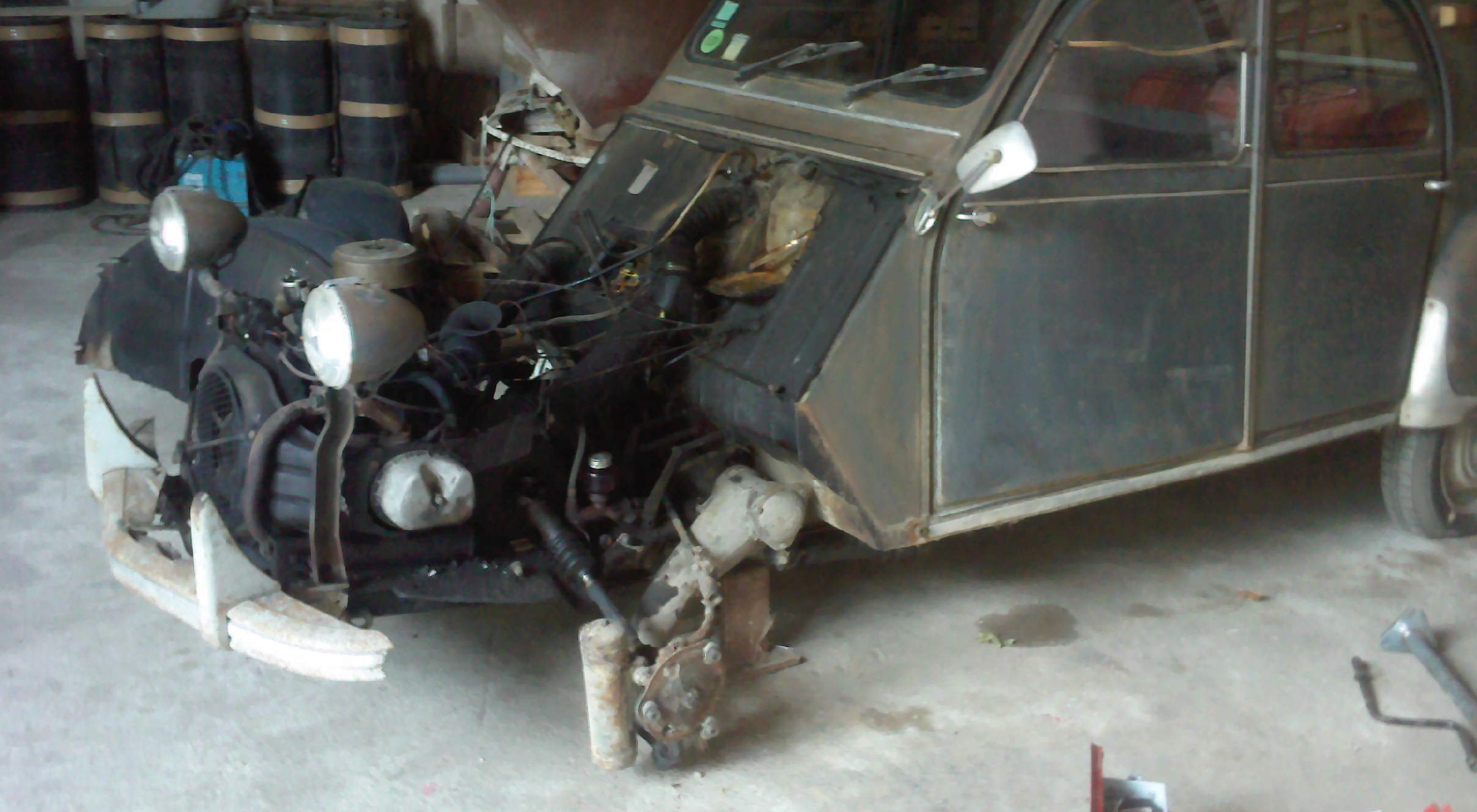 Today is a great day : it has started again. It was not that easy, I had to change many parts that I can't name in English (In fact I can hardly name them in French !), but there it goes : it works. If you want the whole details, it's on the French site, there : http://forum2pattes.forumactif.com/vos-restaurations-f10/restauration-aza-64-t56869-45.htmand because a film is better than a long speech, you can have an idea of what it looks like there. http://www.mediafire.com/file/pmo9qk27d7etp5zThis was filmed by my five-year old daughter, so it's a bit clumsy but it's great that she was there to capture that awesome moment. Next step : the brakes.