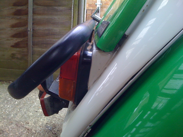 Beacuse I love my bootbox, I fitted extension peices to the adv bar to allow enough clearance for the bootbox, these effectively actes as a crumple zone, saving the body work.