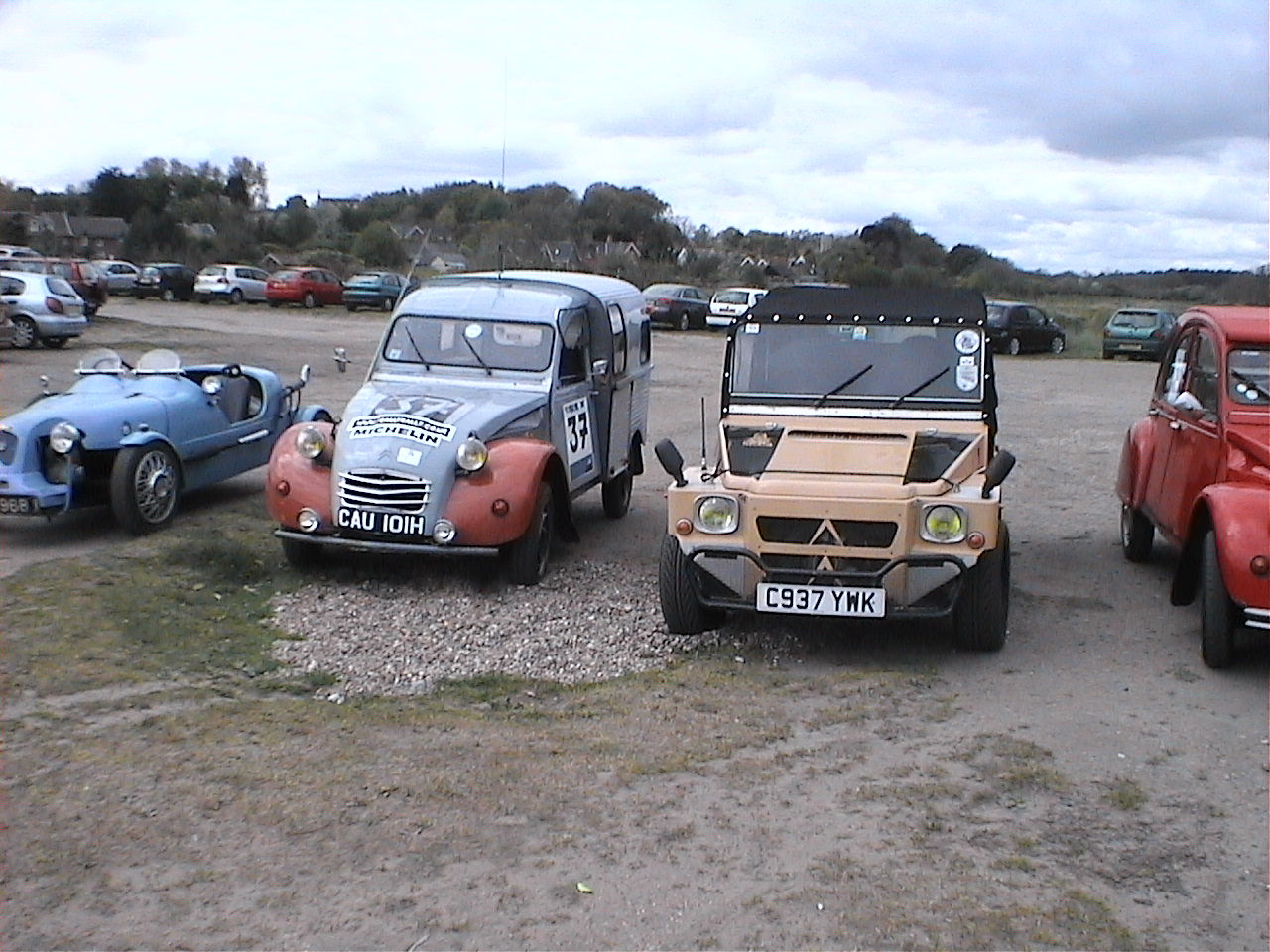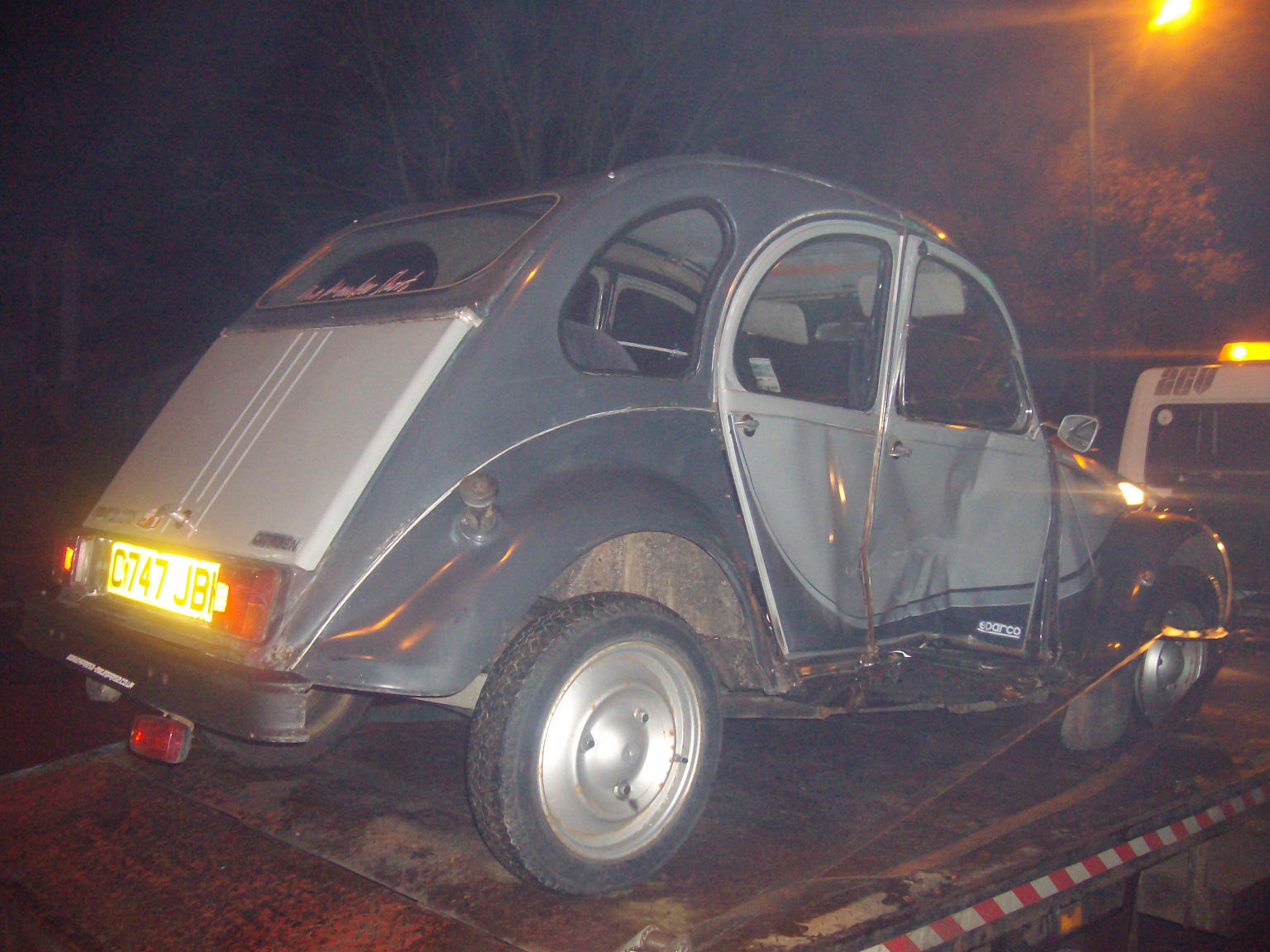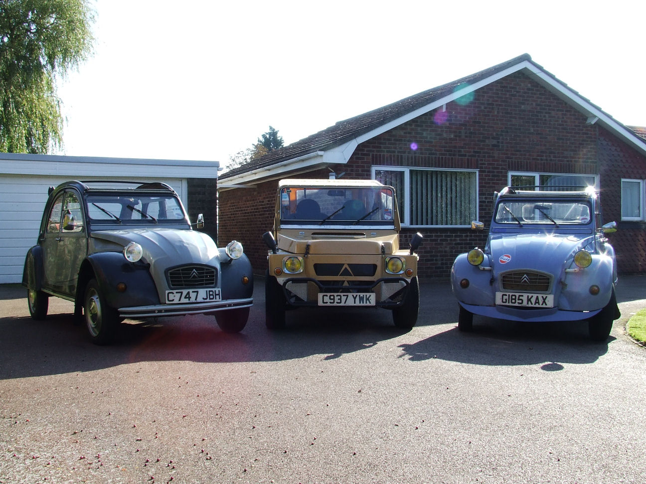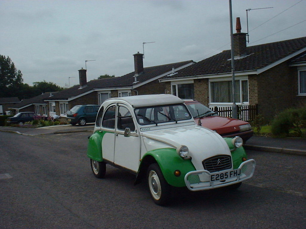 Hi, no Charley still sit's in my garage, not sure what to do with him yet, bit reluctant to just let him go, as i said he was saved from the crusher with just seconds to spare, the guy in the yard had the JCB bucket resting on the roof ready to squash, had to patch the holes in the roof to take it home, after doing the work for the MOT my sister inlaw bought it off me and took it down to Brighton, then moved to the Isle of Wight, then two years ago she had him vandelised, smashed the lights clean off the bar, wrecked the roof, dented the bonnet, boot, doors and wings, so i bought him back and put him on the road, my son had his Blue 2cv and i had the Grey/Grey and the Jeep, hence the earlier pic of all three, then the blue 2cv was crashed beyond repair and my son neaded another car, so he bought Charley, then as my son turned right into a junction a guy from behind who couldn't stop ploughed into the side of him, that was last November, and he's sat in my garage ever since, here's a pic of it just after i got an MOT on it, note Duck tape on roof, all it required was a patch the size of a fag packet to the floor for it's test, and i got it from the scrap yard for £25, the other pic's are of it after i'd cleaned it properly before my sister inlaw took it off me, and with my old D*lly, sorry if i've bored you with my tale, ha ha i do tend to wabbit on sometimes. |