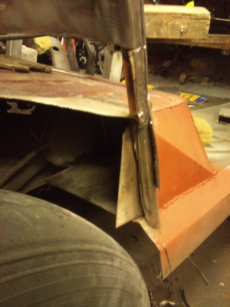 If I can get hold of a brake drum and axle bolts I will fit the suspension and modify the arms to allow the wheels to fit, I'd rather not narrow the track, I'd prefer to increase the negative camber and sit the rear wheels just inside the bottom of the rear windows and as for the front I'll probably do the same, I want the front wheels to touch the wings and burn the paint off though. First of all I need to deal with all the rotten pillars. I think Geo is right, I'll probably make them out of 20mm tube and a bit of folded sheet. I really didn't want to get involved in fixing rusty body shells, but this one was cheap and I'm reluctant to spend money on stuff I won't see through!