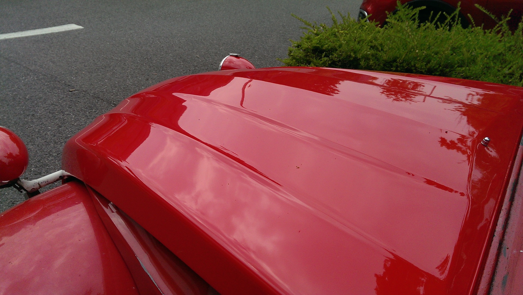 I've machine polished the remainder of the paint on all the panels I could bring indoors. Shiny! Also got my bonnet painted professionally - money well spent I expect, as he said the paint should be UV resistant and its been baked etc. It looked like a total bag of poo before even after polishing so I'm pleased with that. Example of door shinyness! Putting these back on the car made the rest of the bits that I hadn't done yet look really funny...