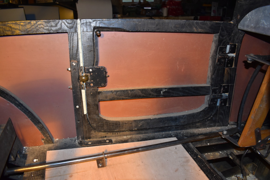 I am woodworking again on the 5HP door. The problem it's a bit to large and i did not have the original 5hp doorlock. In the box with parts that came with the dismantles car there was a lock also Citroen but i think it was from an older model. As the car was transformed to 2 doors i wondered why there was only 1 lock. SO i had to do with what i had. I cut the door to fit the other lock in. When i was in the garage a had taken almost all from that parts box and heard something sliding in it. It turned out the box had a double bottom and the right lock was in there with latch. I did want to put that in but now there was a part of wood missing that should take the screws for the other lock. So now i am glueing in parts of wood to fill it back in.... Hope i get it ready before the woodworms come in.
