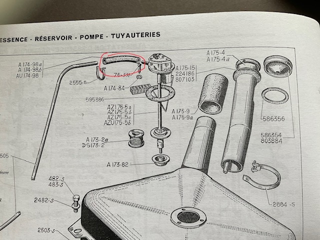 You wrote : If the rubber grommit (A175-9 ?) is taken of you can take the filler pipe (A175-4 ?) out trough the hole in the wing if the car is lifted high enough.