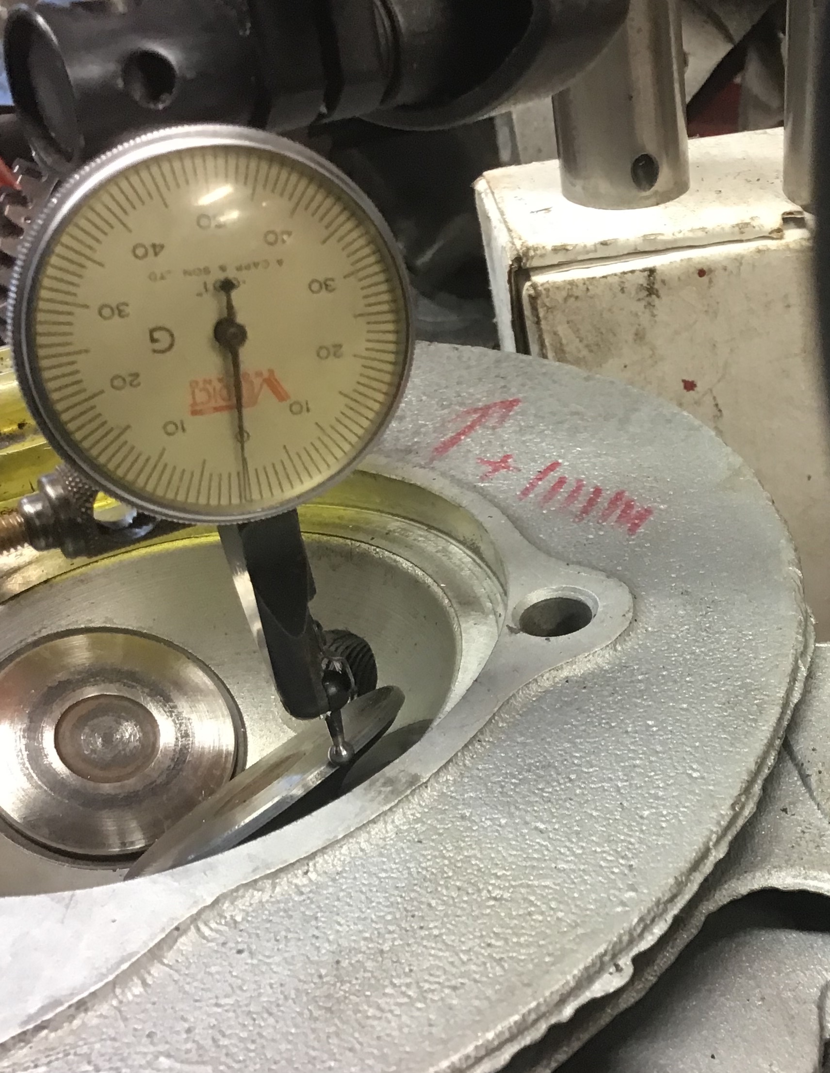 Cylinder Heads. Exhaust Vales ok. Inlets to much wear, so new items. Using my £10 dial guage (Car Boot) Attachment: