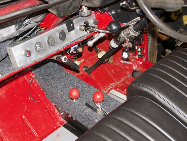 Prop tunnel is fabricated from Alu, saved about 8kg from the orginal heavy steel version, coved with thin carpet to reduce sound/resonce. Extra panel for USB, Diesel Heater Control, Map Light, Reverse lamp, Alu Lever is the rear brake line lock valve. Attachment: