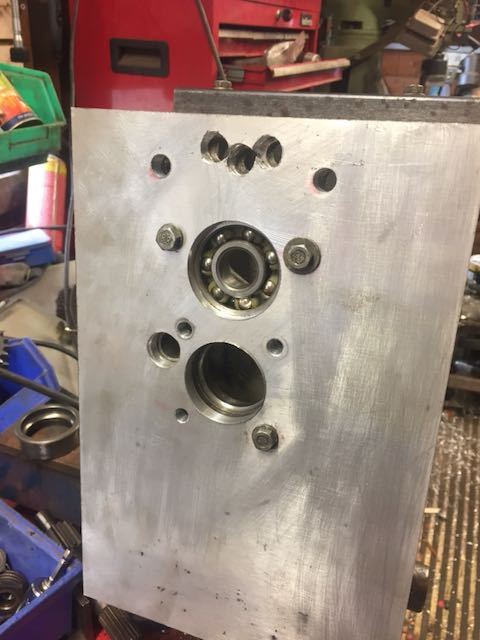 Back cover machined, fits well and retains the bearings properly. now to fit the extra shaft housing. Attachment: