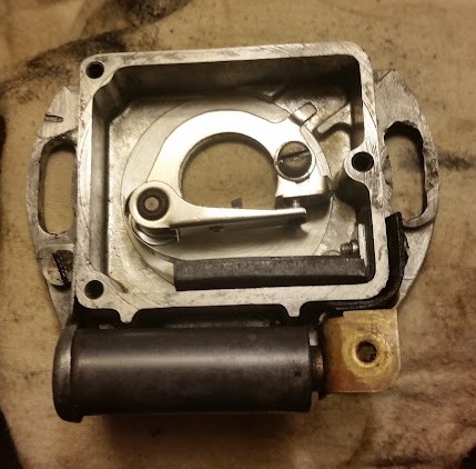 Recharged battery in the car divers tries...no luck. Changed coil, nothing. I did put the choke back to zero and a little splutter...no start. Took the idle jet out, cleaned. An other try and 1/4 turn and it sprung to life... super. Cleaned out the heating tunnels. So hope the oily smell is gone now too...