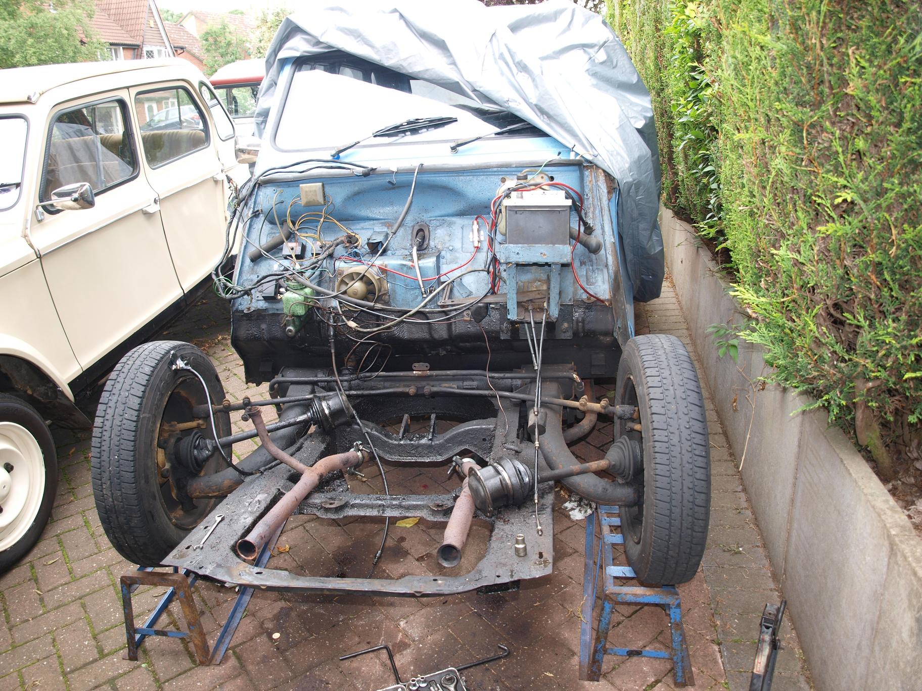 Hey Shans - thanks for the comments....We didnt do the work and bought the car complete but looking at ours I think these are the mods - A Dyane is a lot easier to do than a 2CV as you dont need to re-align the front wings or bonnet - first off, you have to find a decent Ami Super chassis and engine - you then have to cut holes in the floor to allow the larger suspension cans to fit - cover with a new box section - also, if the original steel large capacity fuel tank is in place, the boot well needs cutting out at the front and a new section welding in to allow for the tank to sit under the well.