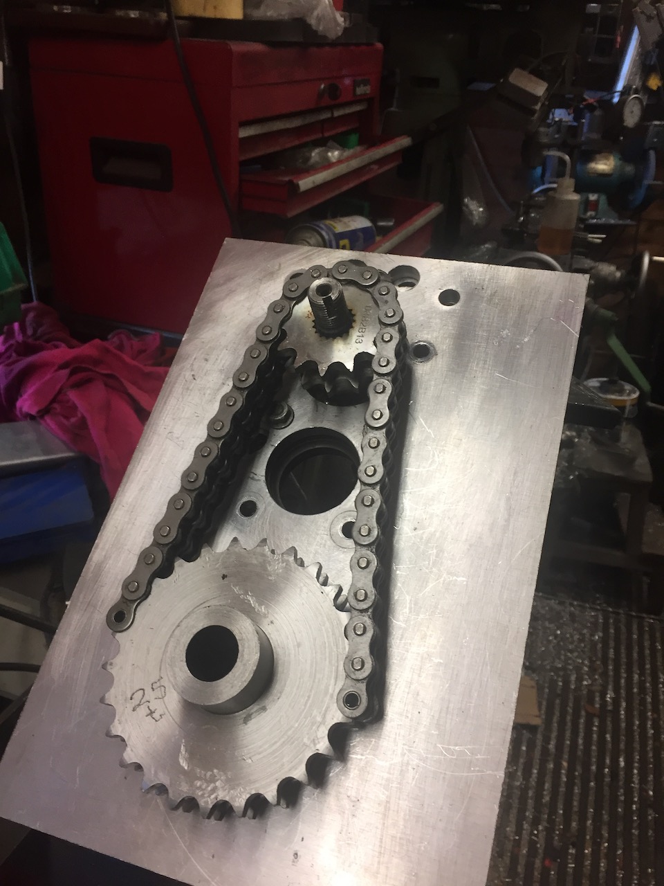 Chain and sprockets in alignment, need to fabricate a a longer syncro/dog selector. Attachment:
