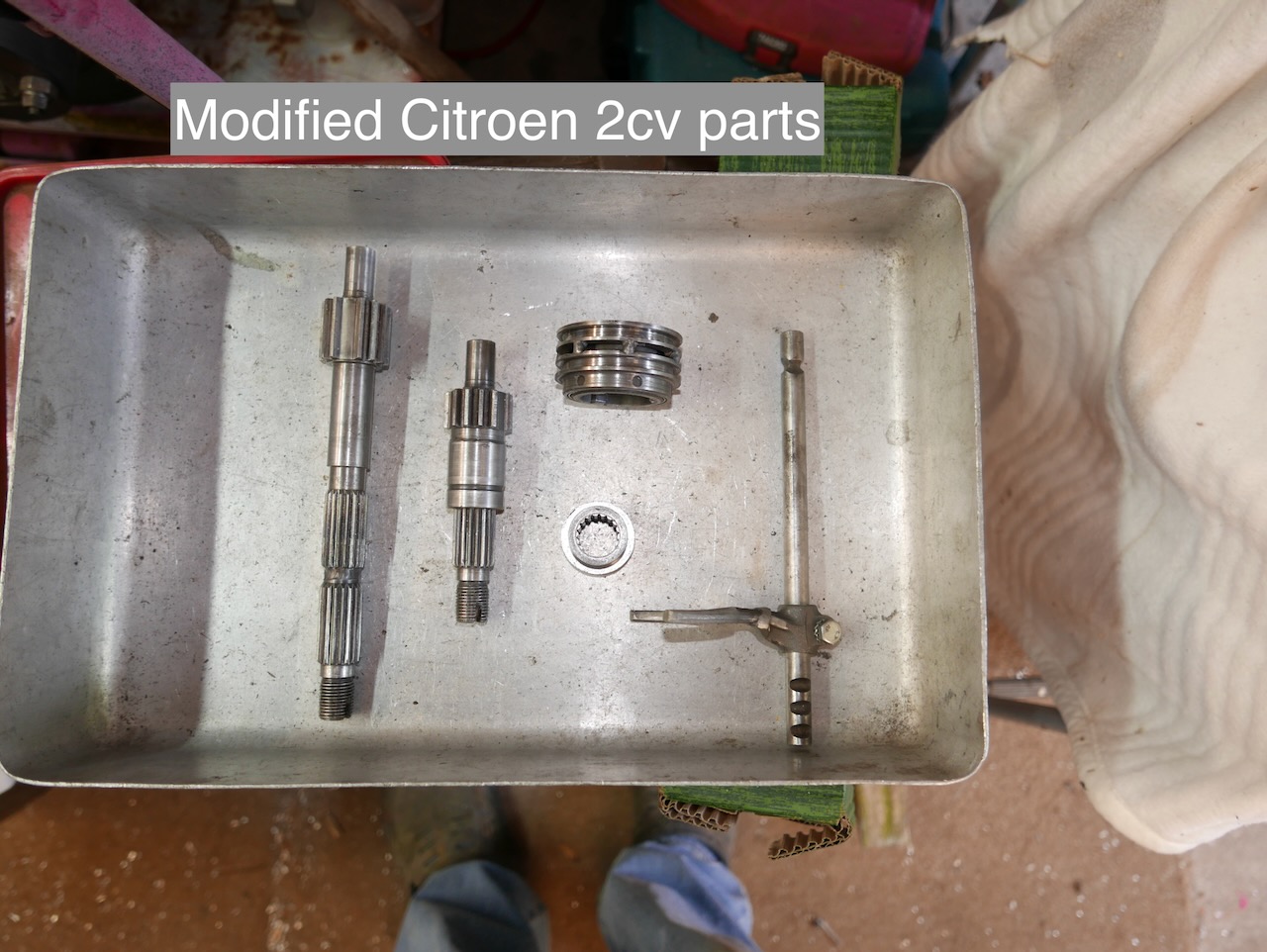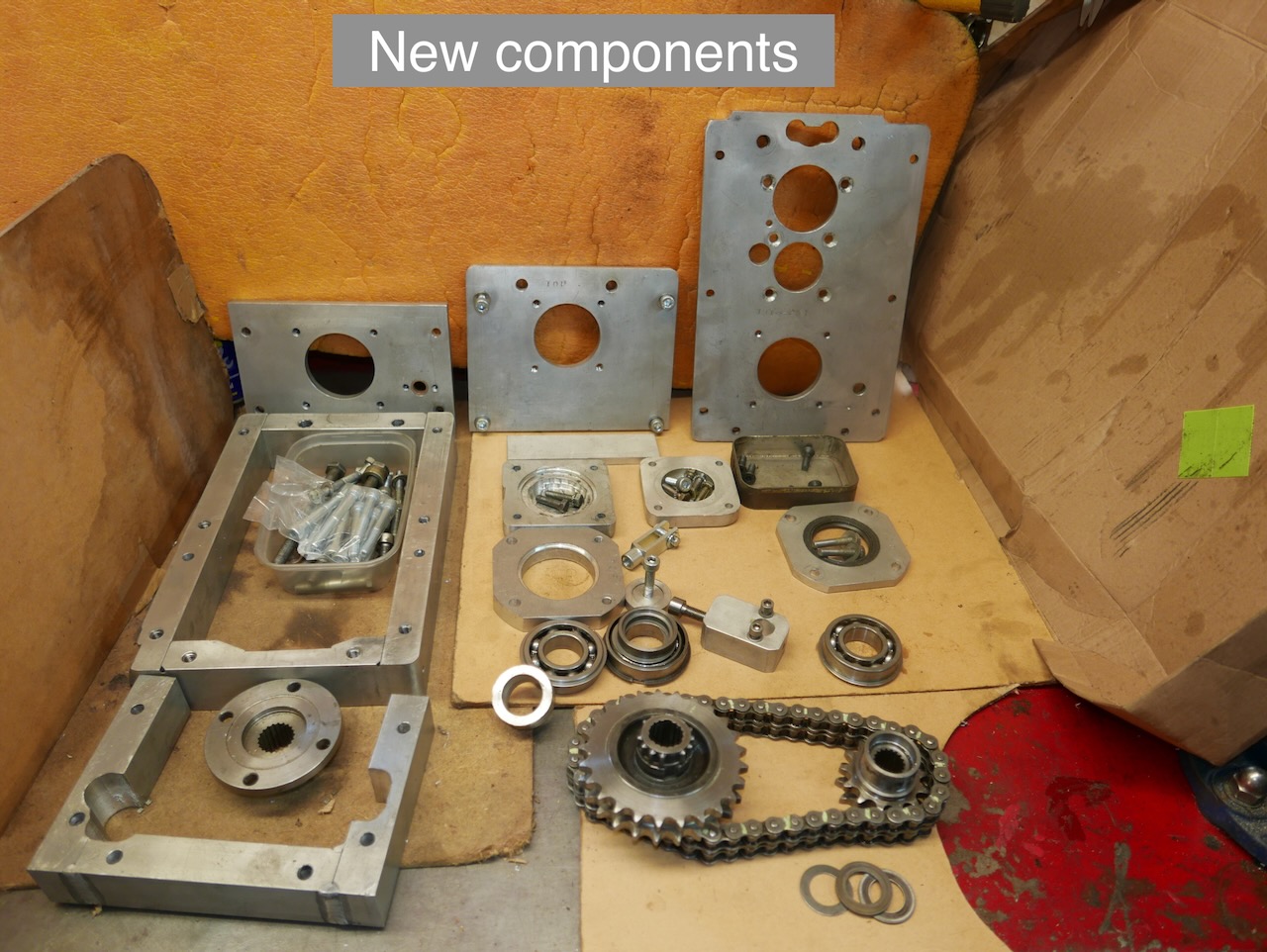 The saga so far..... Standard parts, Modified Parts and new parts. The "new" parts not yet, necceassarly in the correct order  Some of the bits to do ... Oil Seal for selector rod, and (gear) lever for selector rod. Estimated additional total weight about 14Kg  Attachment: