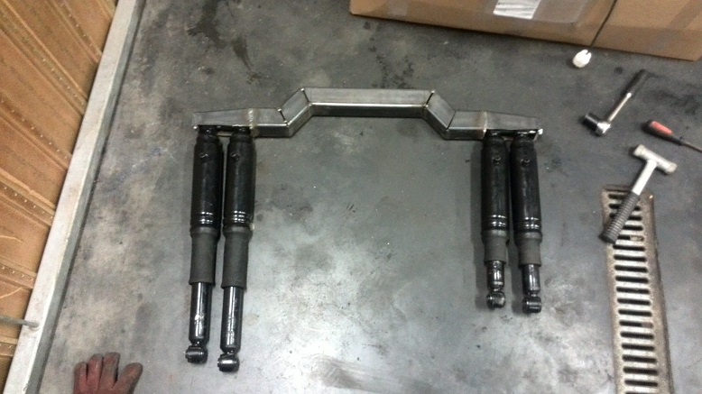 Made a bridge to host the air shocks, going over the gearlever.