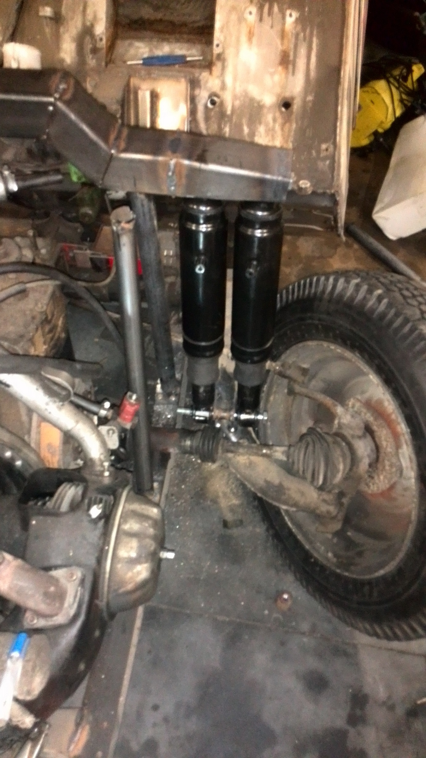 Air-ride my front end today... Works to good, suspension is very stiff, 4 shocks for a Us truck is to much for a 2cv :lol: :lol: :lol: :lol: :lol: