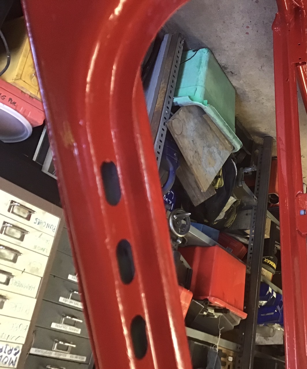 The holes are to let the point welder in, they should be closed with tape to keep water out of the frame. For your bronze bushes in the spindles, it seems some copper water tubes have the perfect size.
