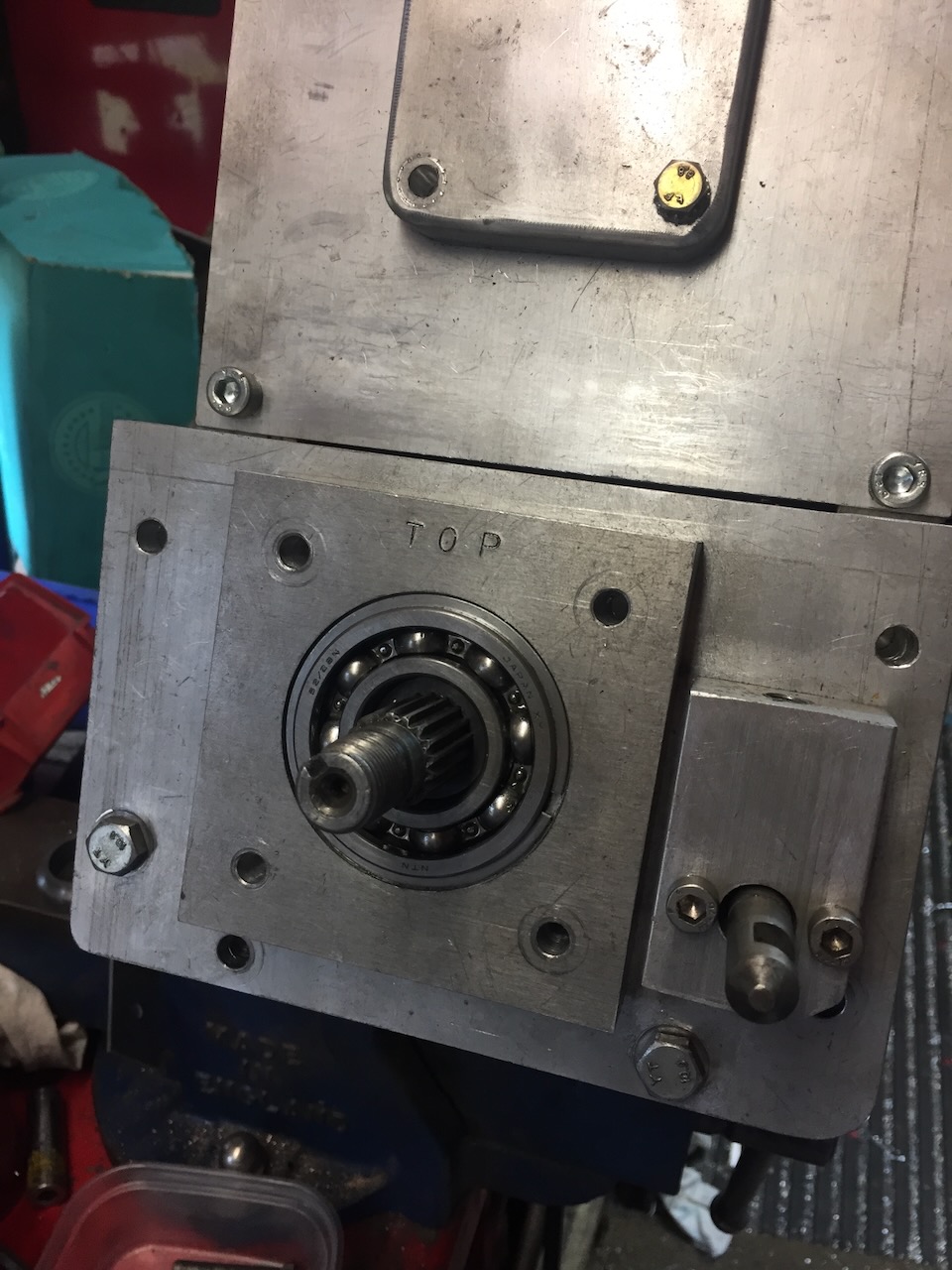 Spent few hours making the rear bearing retainer  but its a cockup as the 7mm bolt holes are not in the right plac- (-/+2mm)  ( Attachment: