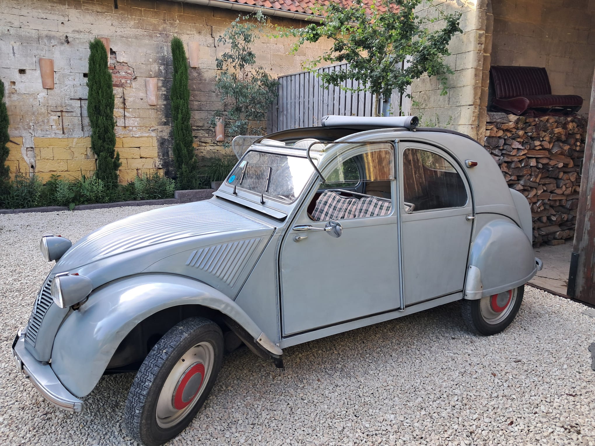 An old garage in France. Look a the license plate of the 2cv, one of the first with the new numberplate system after de war. It has a very low number.