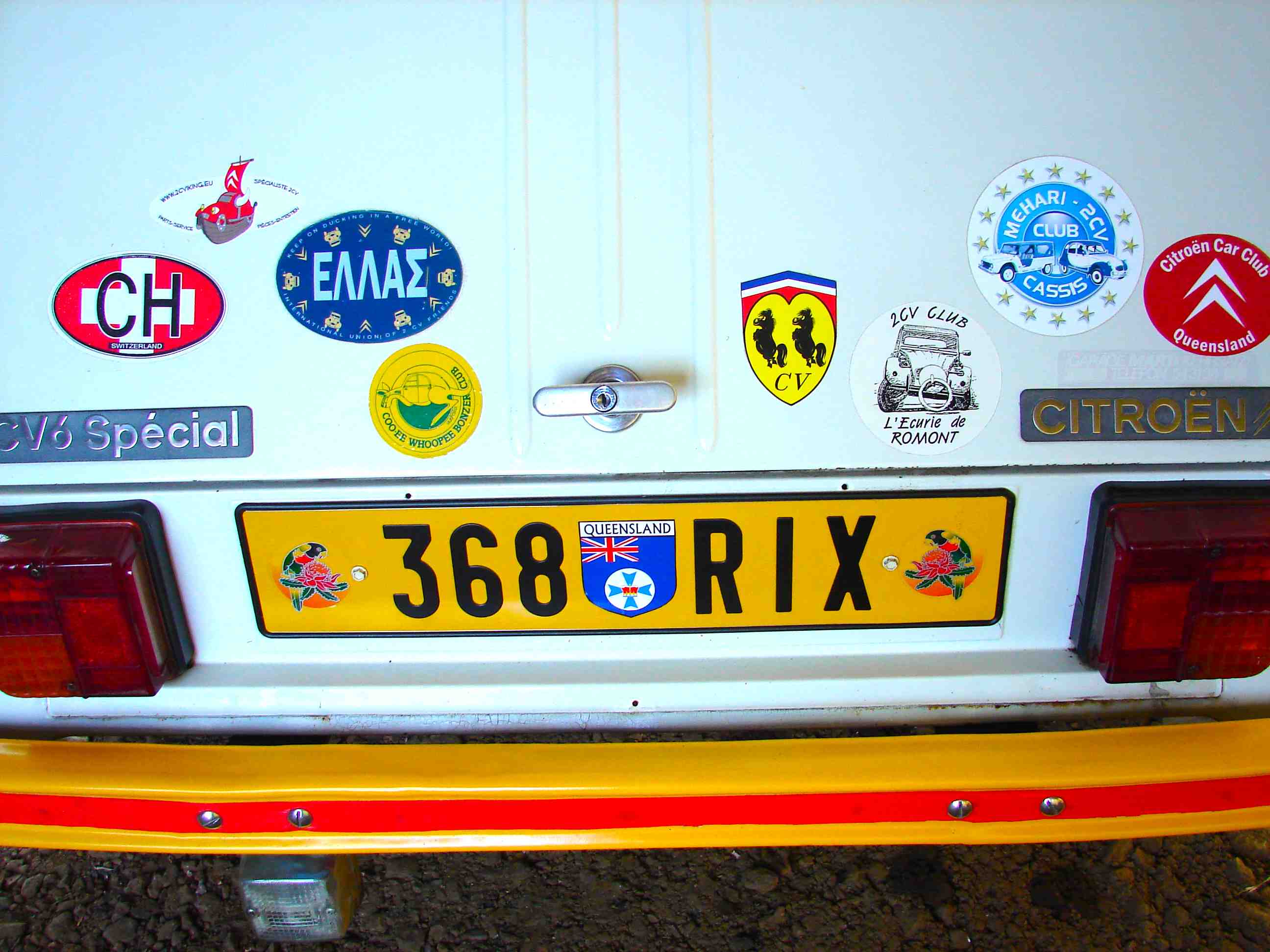 I'll send you a genuine www.international2cvfriends.com sticker on condition you post a picture of your 2cv wearing it!