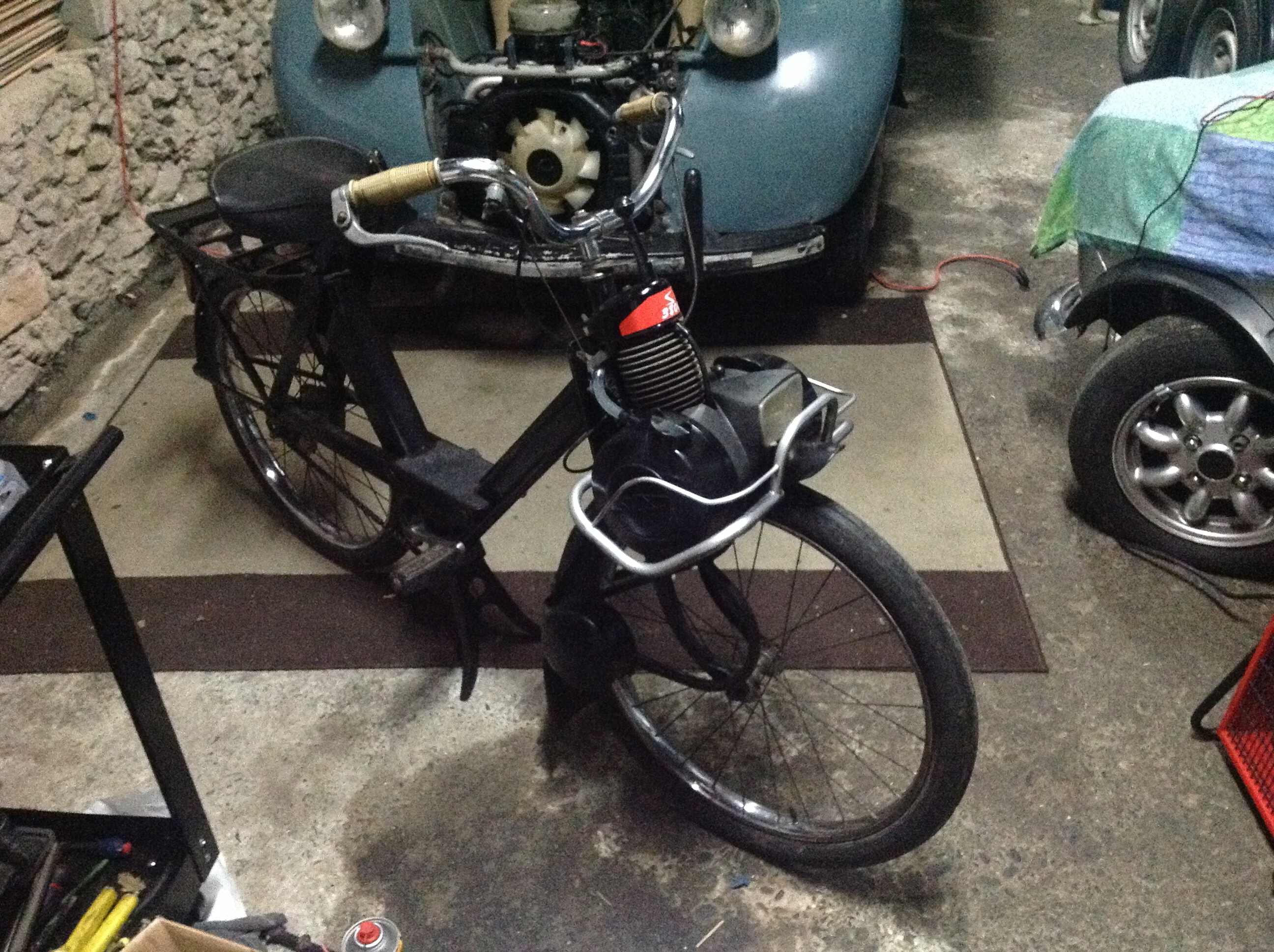 I bought this little beauty today after seeing it on the French E Bay and Le Bon Coin. It is a little mixed up with parts but the engine number is 4574991 which puts it as a 1969 and a 3800.