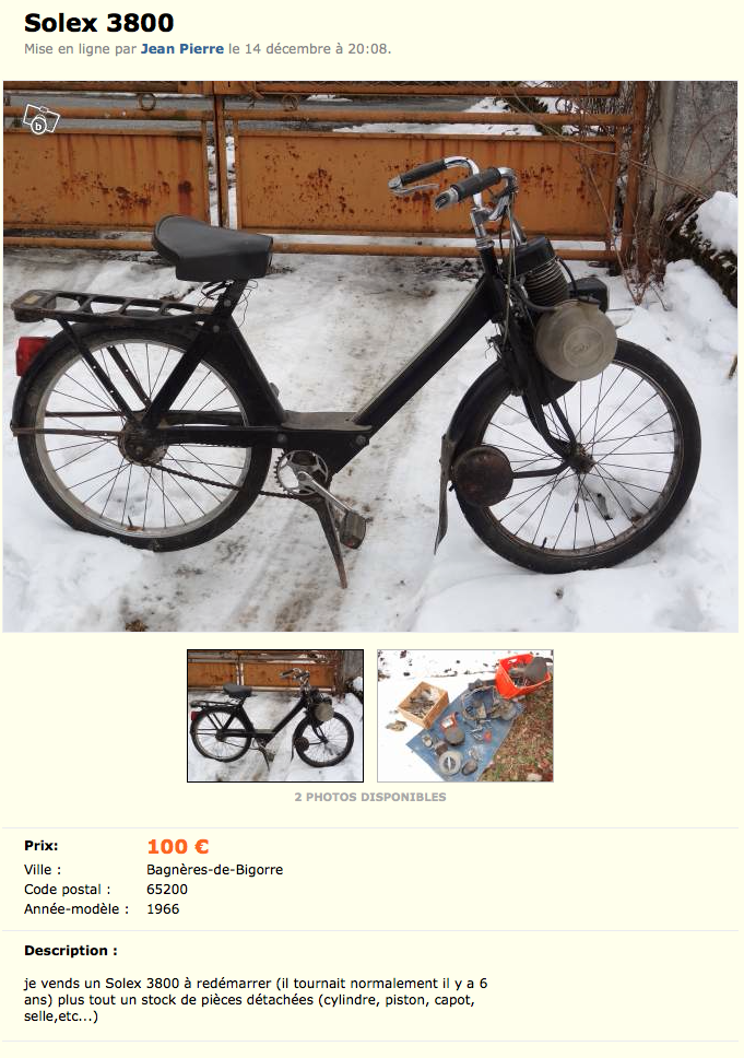 Bit of a bargain and just up the road from me. Just got back from collecting it and there is more than a €100 worth of spare bits just in the boxes. Bike looks good too. The guy did say he was surprised at how many people had emailed and called (over 15). Not surprised as the price of Solex now has risen considerably over the past year. Attachment: