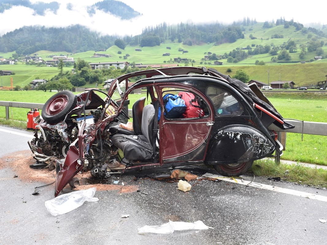 Austrian 2cv crashed by a van. Is that the cylinder under the front door?