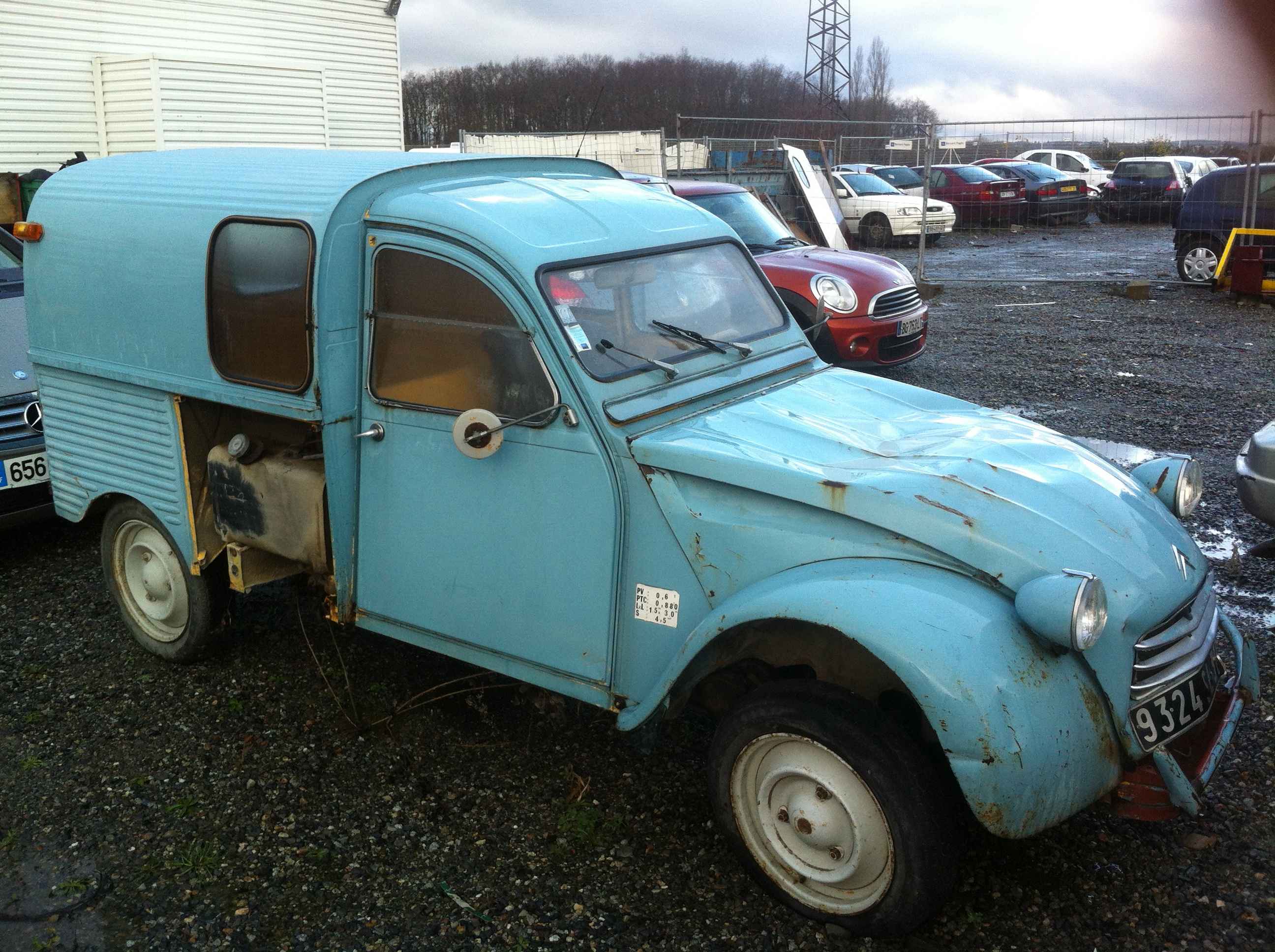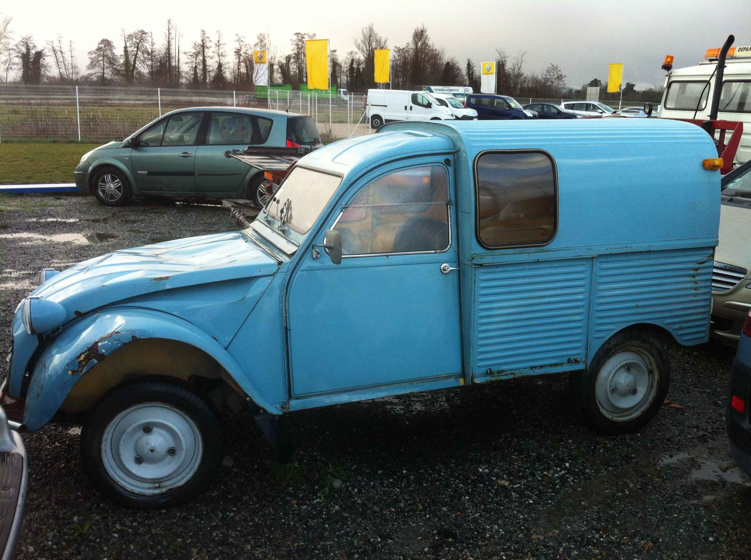 Found this little Ex Posty AZU (single seat in the front and yellow interior) today on our way back from Toulouse. Went into the garage to see how much he wanted for it but it is there to be restored. Found out this big Renault garage (pretty modern, just built) also does 2CV restorations and there was a beautiful 1959 2CV in there (not sure on model but the colour was exactly what we want on our little fourgonnette)