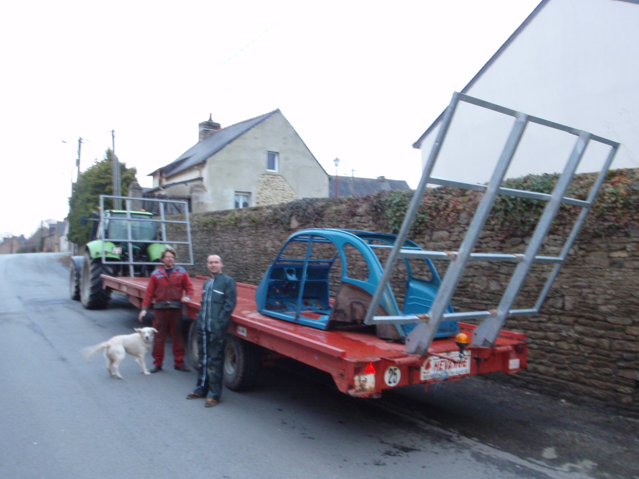 Had a good laugh this afternoon when a local farmer rang to ask if we could receive his 2cv for complete restoration. Yes sir, no worries bring it in. OK he would just drop it in on his trailer.
