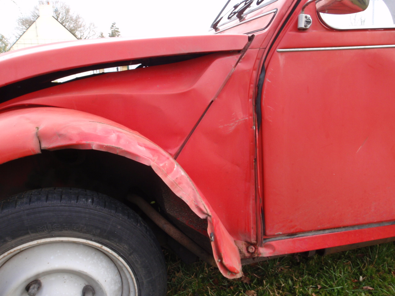 [quote 2cviking] A customer lady owner’s 2cv (red 86 speciel) disappeared during Christmas in Malestroit. She rang yesterday to tell us that her 2cv was found by police in Vannes parked outside the thief’s parents place. How stupid can you be when you are young? Anyway 2cv is buggered big time, can’t start or roll. Going to inspect the 2cv next week. Photos soon[/quote] Been to see the 2cv mentioned above. Goodbye 2cv no more. From here on sadly parts only. Chassis buggered, body pushed back, none of the door can open. The rest you can see on these photos. Young kids, no insurance. Kids taken to court but they have no money. Lady devastated and needs to fork out 3000 euros to get a similar 2cv. Bloody hell. Attachment: