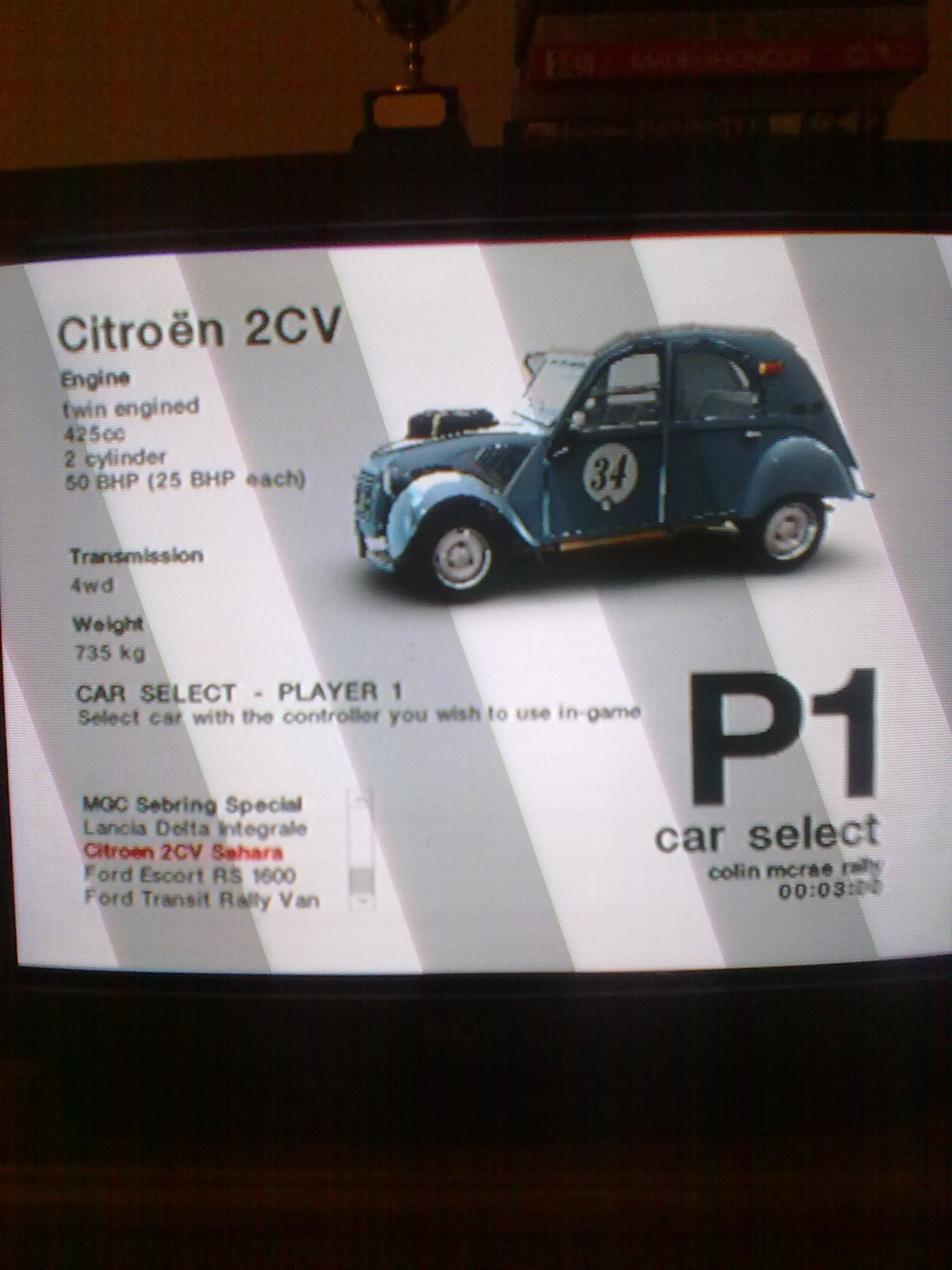 you can also unlock a sahara on colin mcrae rally 04  sorry about the pics took from the tele on my phone