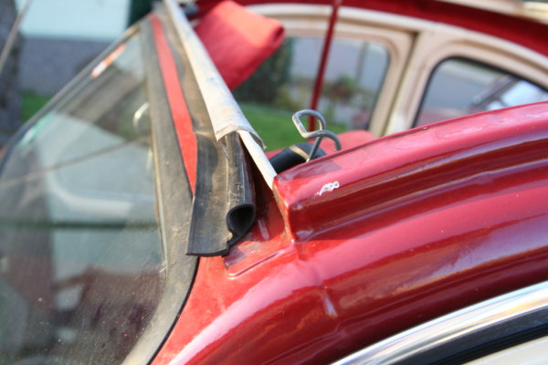 Found this picture, first the rubber is put in with the lip pointing a bit upwards, then the aluminium profile is pushed over it. Straight edge to the front. Hook it over the rubber and force the lot backwards over the body edge.