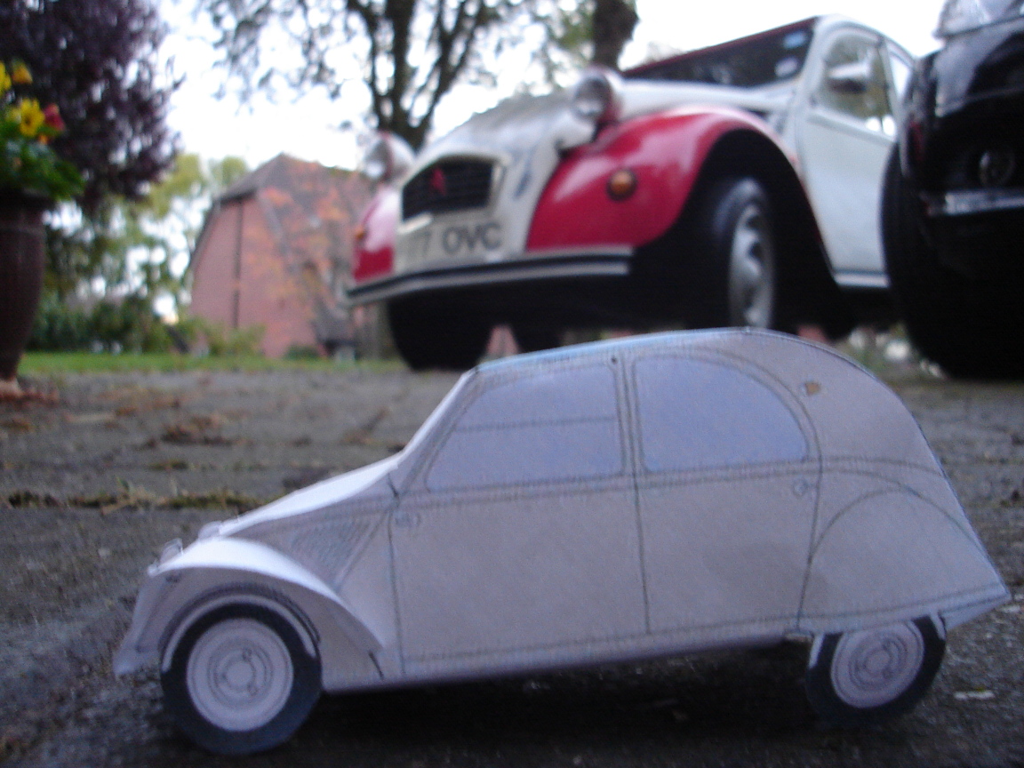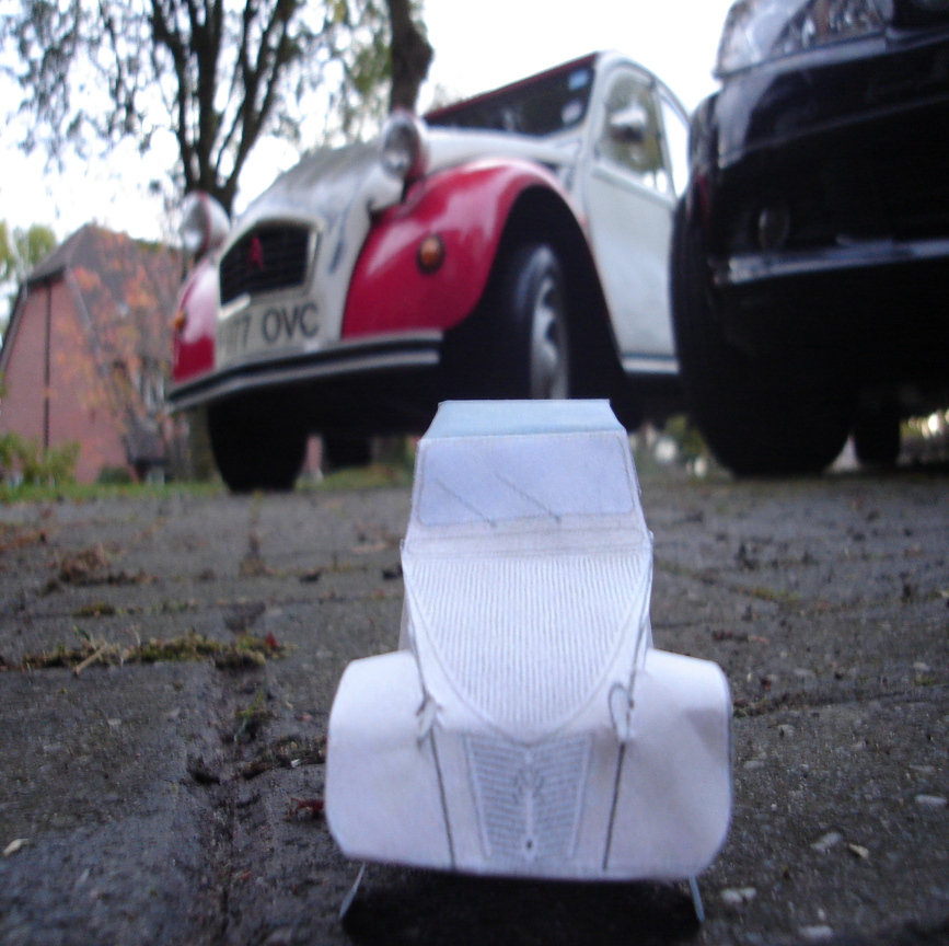 (No 2cv's were damaged in the photos. All paper 2cvs were repaired and parked on display albeit a bit crumpled. :P)
