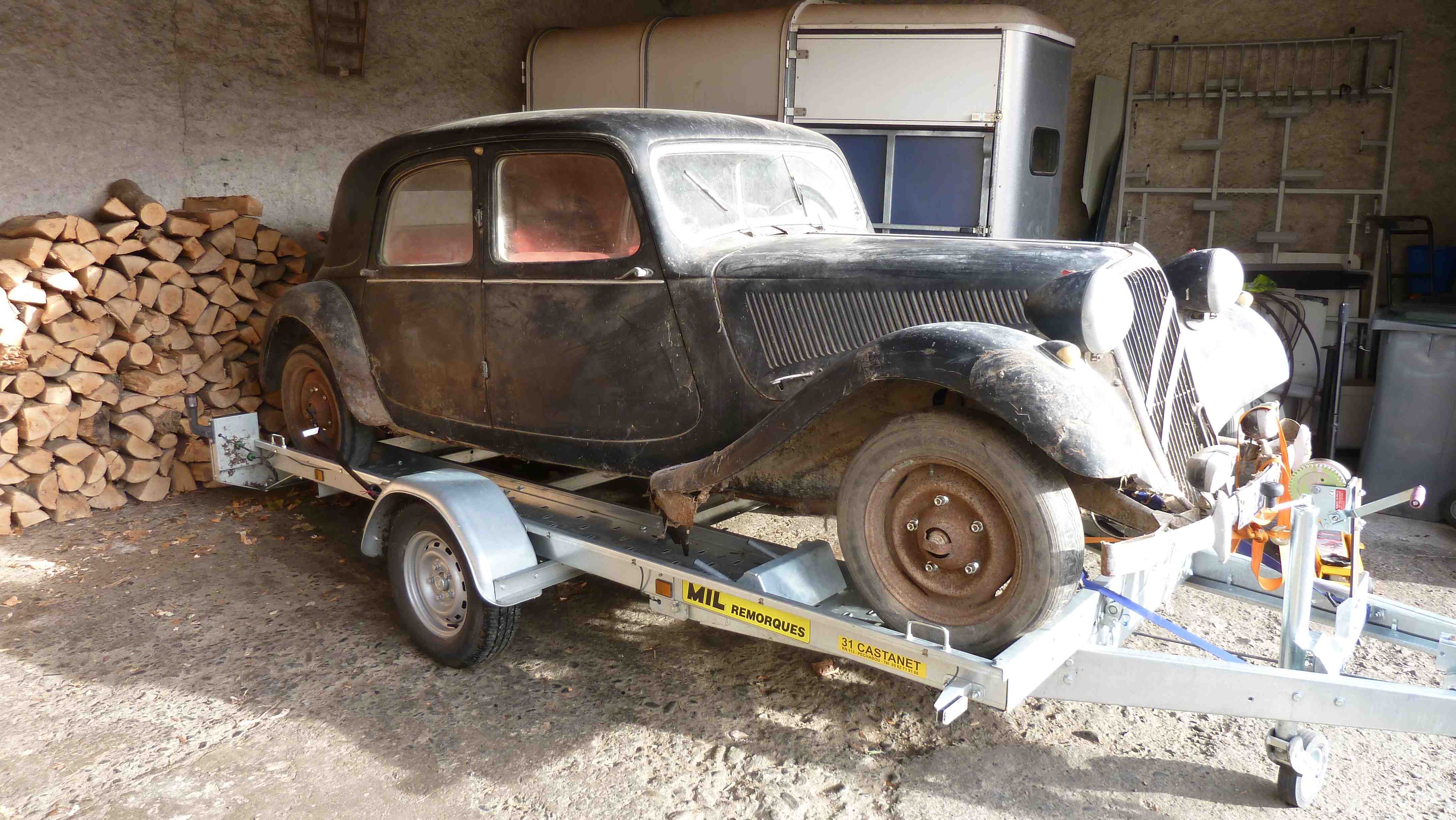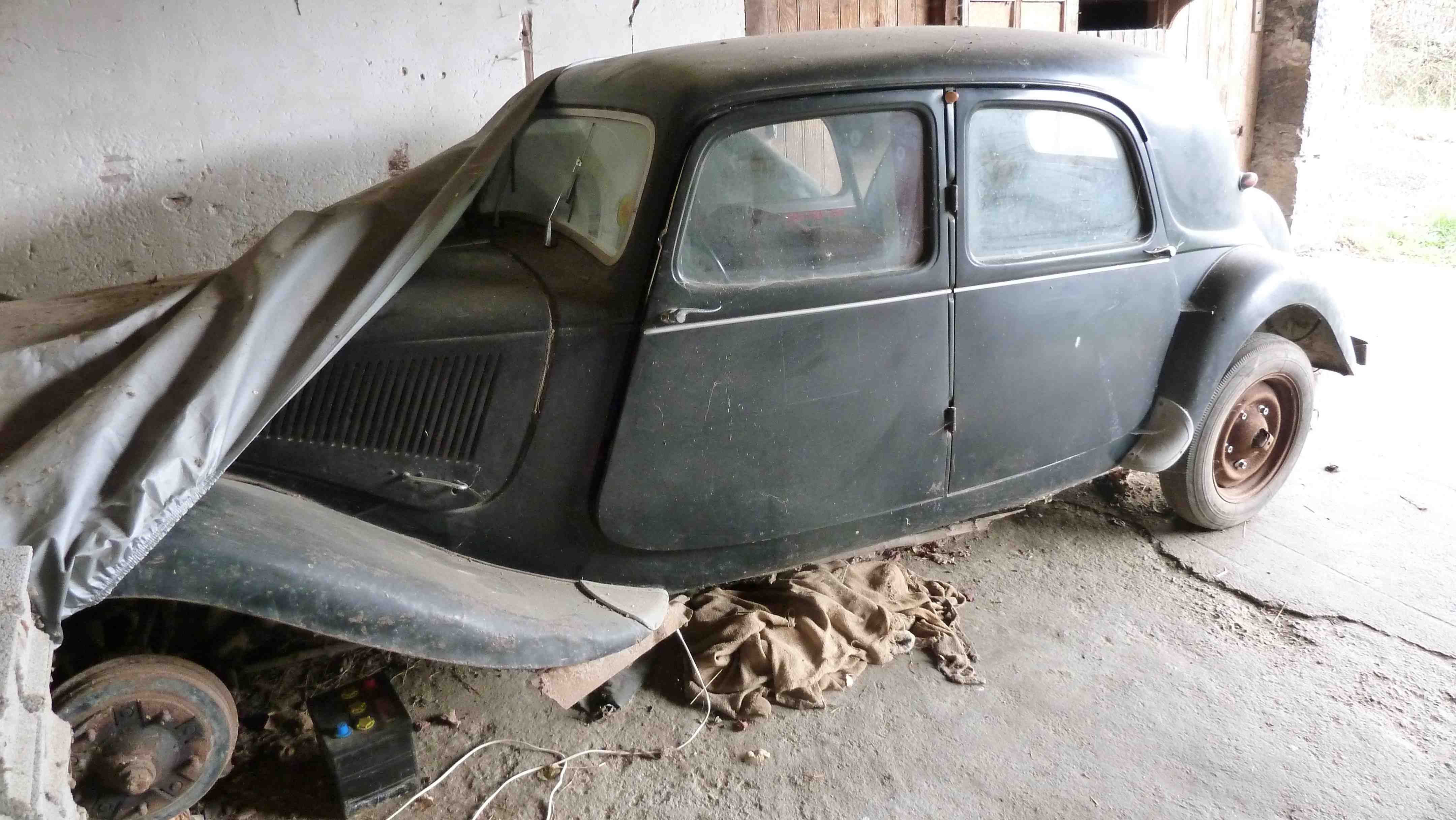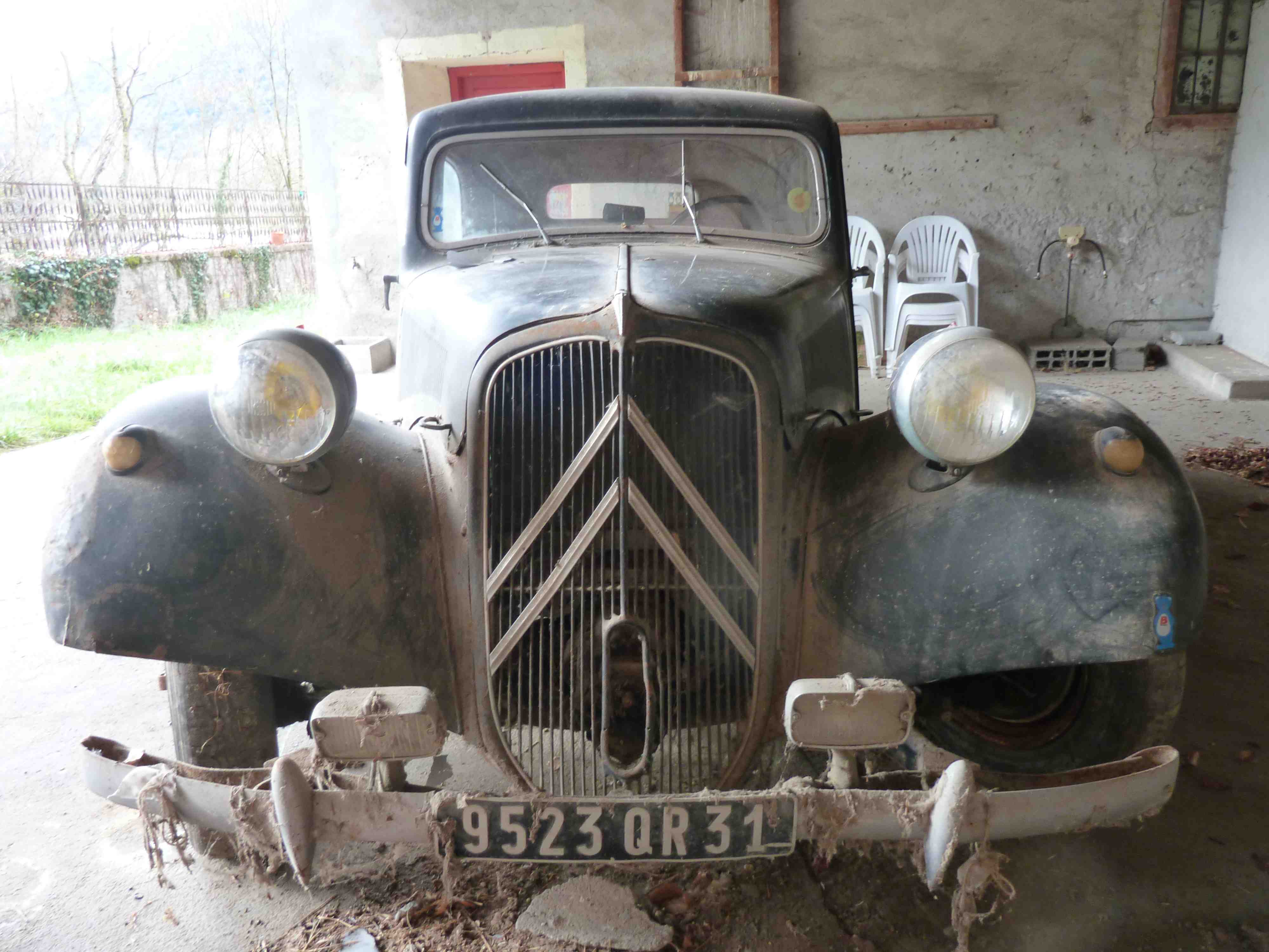 Holy Crap!! I own it..... the guy was so happy that I was able to move it and said if I didn't want it then he would scrap it as he had no means to do anything with it. He wanted no money for it. He last drove this car in 1972 when he parked it in the barn. This was the car he learnt to drive in. The original owner who bought it brand new was the boss of a Sandal Factory which used to be close to our village. Then the father of my neighbour bought it and used it for 4 years before parking it up - Petrol cost 20 centimes per litre when he last filled it up - I love a story. I have the Carte d'Identity and Permit de Conduire for the owner (who is actually dead  ) and will request a replacement Carte Gris from the prefecture. The job of transporting it went quite smoothly in the end although my trailer is as small as you would every want it. Time to sell the Simca 6 to free up some money to renovate this 1955 Traction Avant 11CV - anyone want to buy it  Attachment: