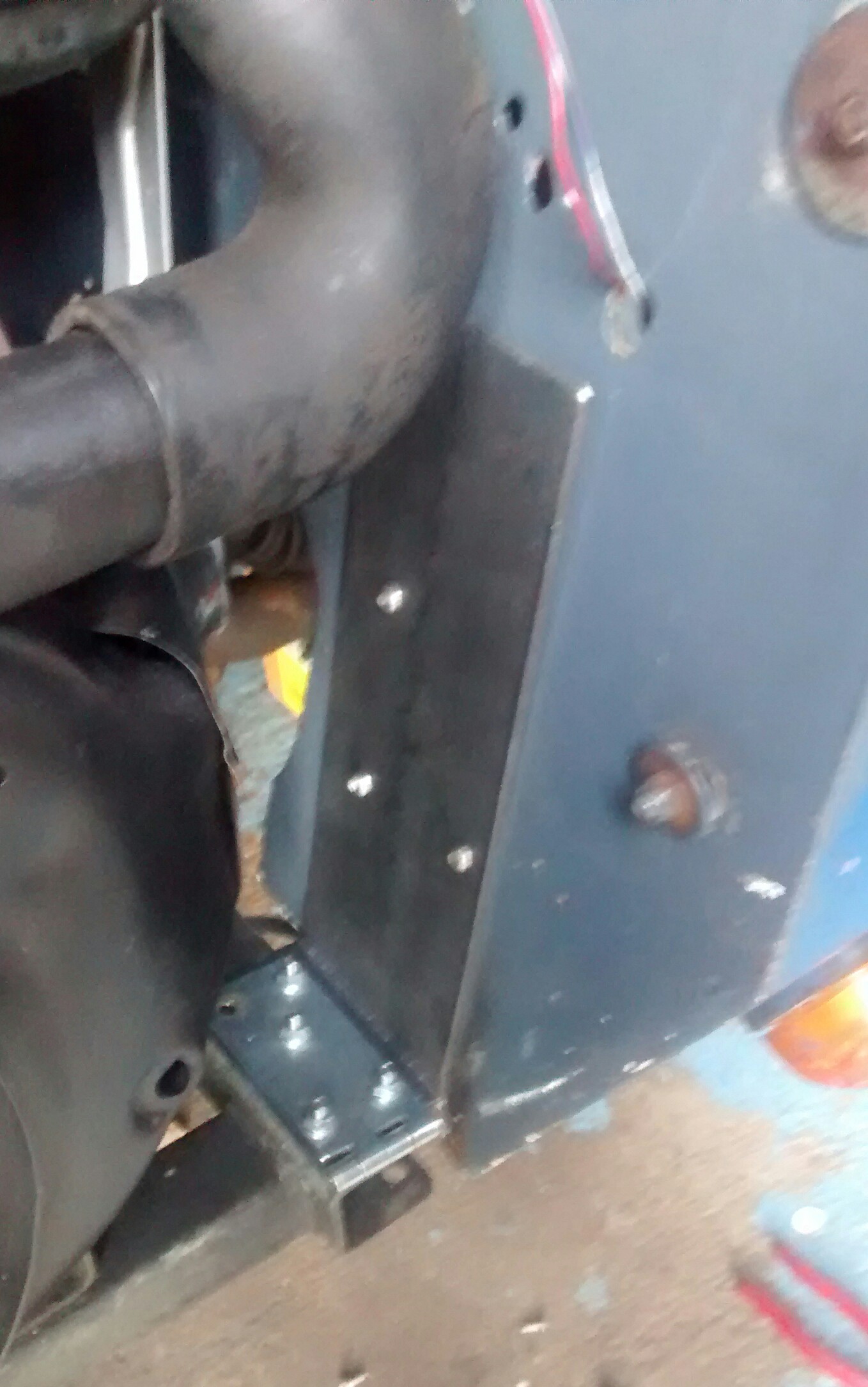 Having sorted the exhaust, and not wanting to climb under the car for a few bits I need to check out, on account of having a cold. Read that as very cold nights at the Hat Camp. I fabricated a plate to attach the wing to the hinge for a tipping front end.
