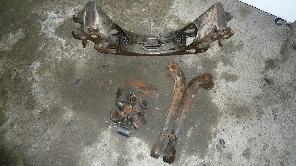 When I removed the silent blocs from the front cradle, I managed to damage the cradle a little using the press. It was repairable but when looking through the costs to sandblast and paint and then replace all 4 silent blocs it came to around €650. A complete replacement cradle with silent blocs installed plus arms was on €700. So no brainer, I ordered it and received it yesterday. I just packed up all my old parts to be shipped to Classic Automobile Services in Holland. Attachment:
