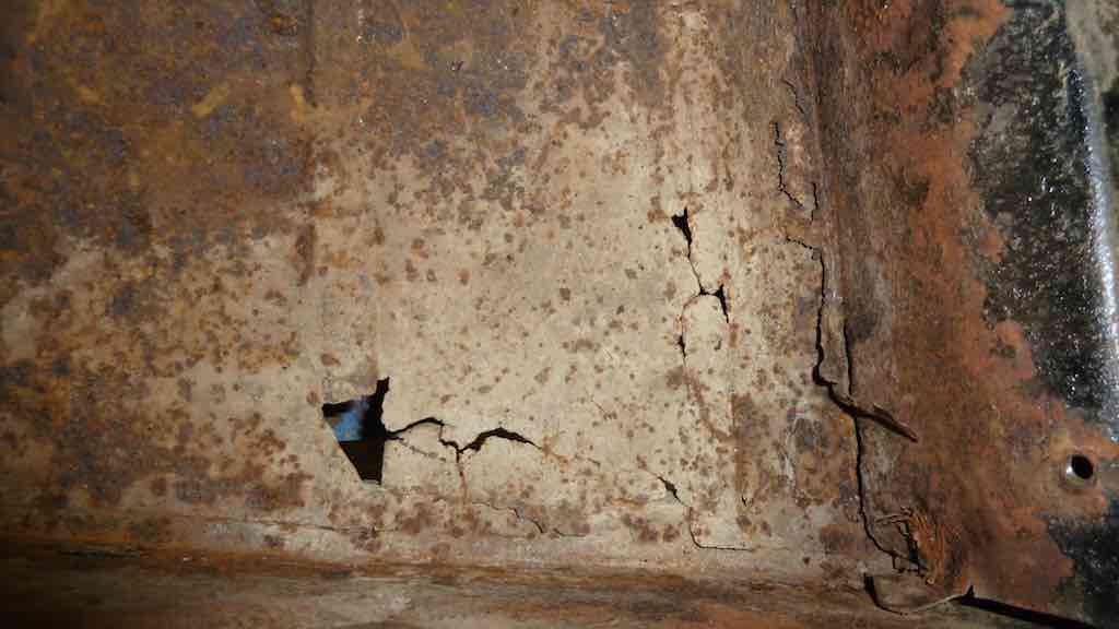 While I was waiting I started cleaning the floor up a little. Looks like I have two patches of holes that need repairing. Attachment: