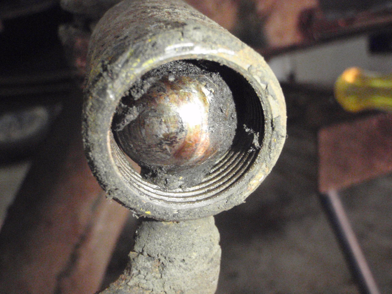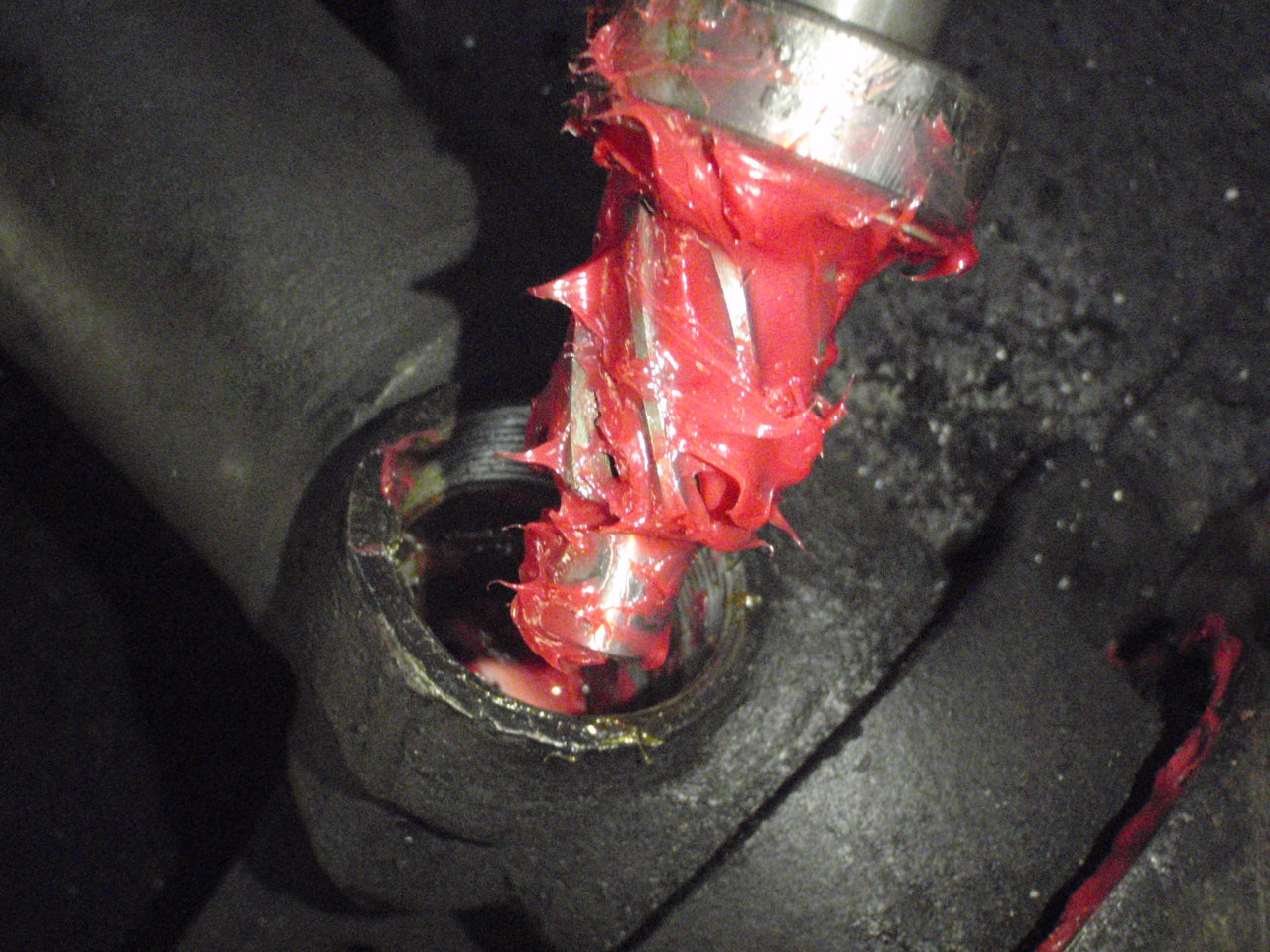 Moving on to the steering Track rod end housing and steering arm ball joints dry as bone + some minor chips to file away. Cleaned, greased and fitted again with new boots. Attachment: