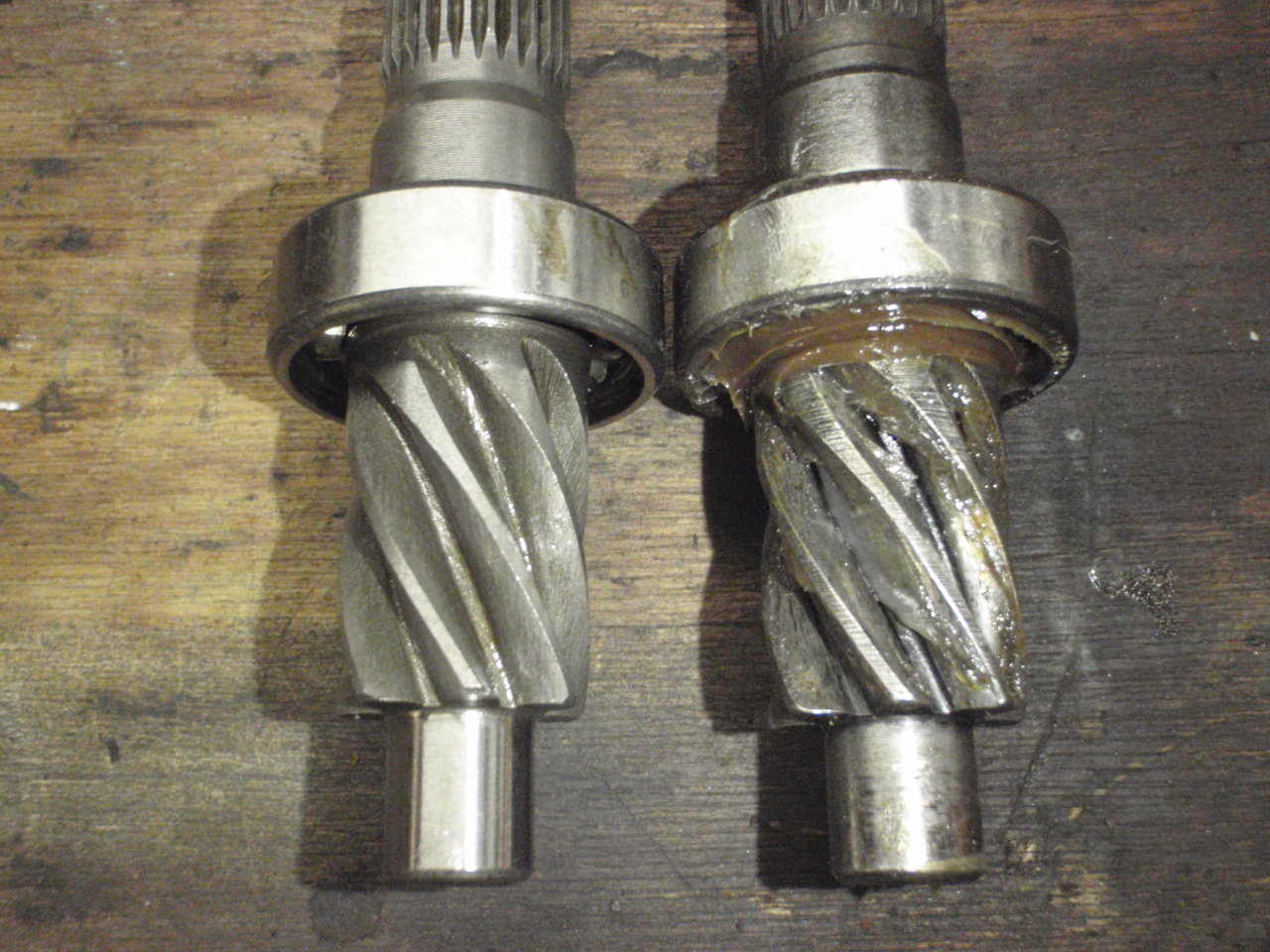 The new reproduction pinion is too big and is biting when fitted in it seat. Attachment: