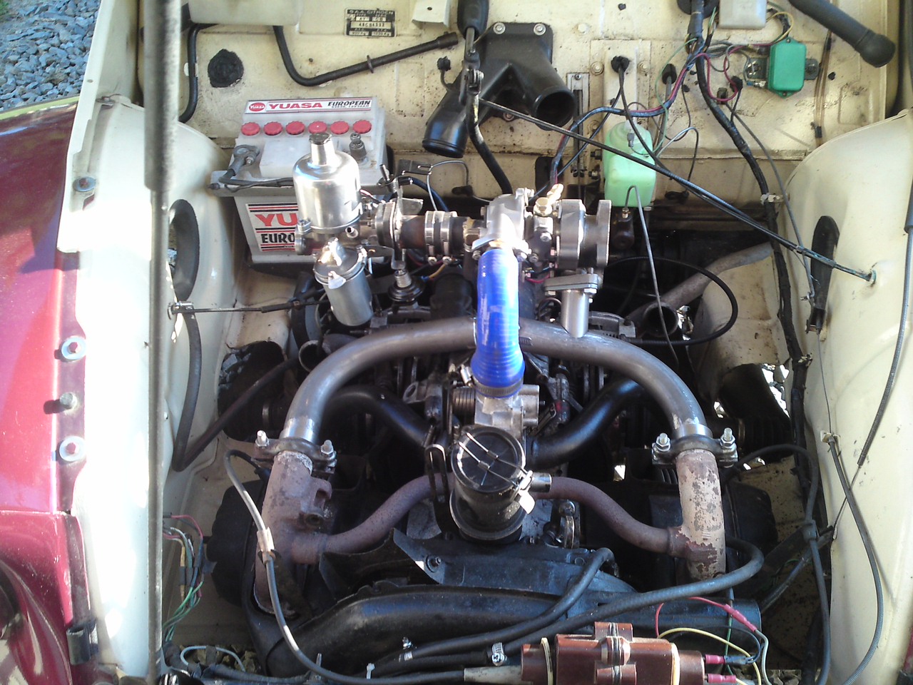 After many hours of nice work - turned over engine without plugs to get the oil though the turbo. Put the plugs back in and thought I'll give it a try and hell it started on first key. It ticks over like a normal 2cv but revs like a banshee. Need to do the exhaust - what silencers are people using on turbos... Do not want lots of noise.